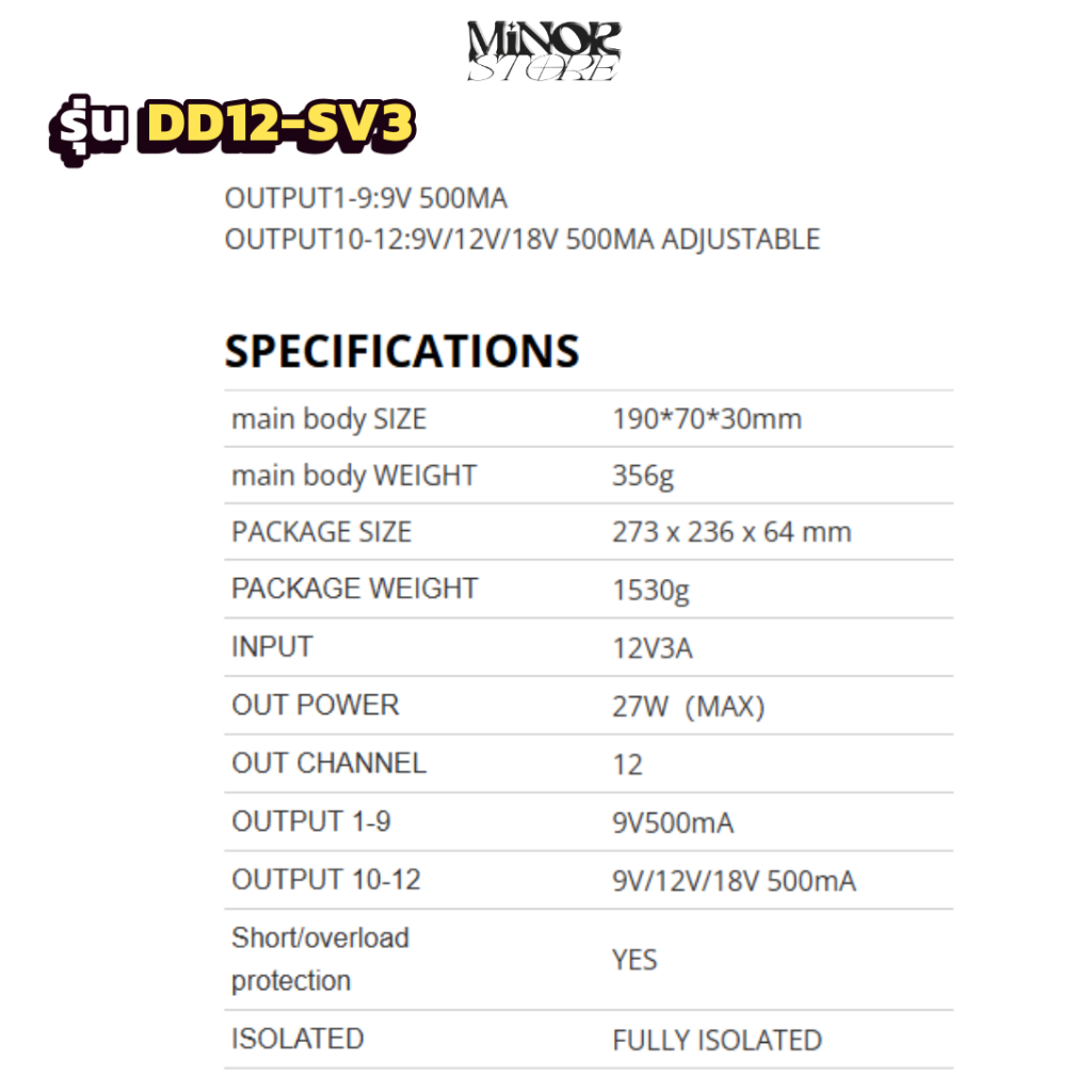 ✔️ (เฉพาะ DD12-SV3) มีช่องที่ปรับเป็น 12V / 18V