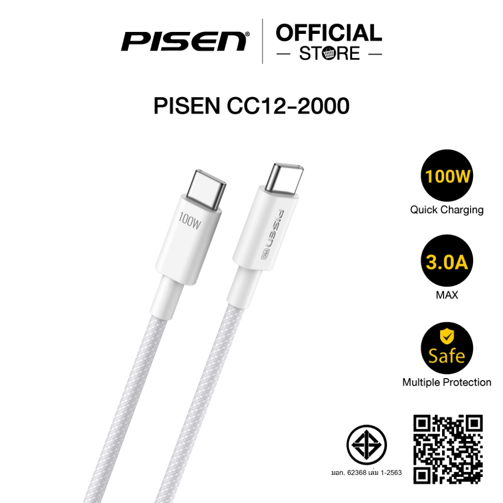สายชาร์จ PISEN PRO C to C 100W Braided Charging Cable รุ่น CC12-2000 ⚡🔗