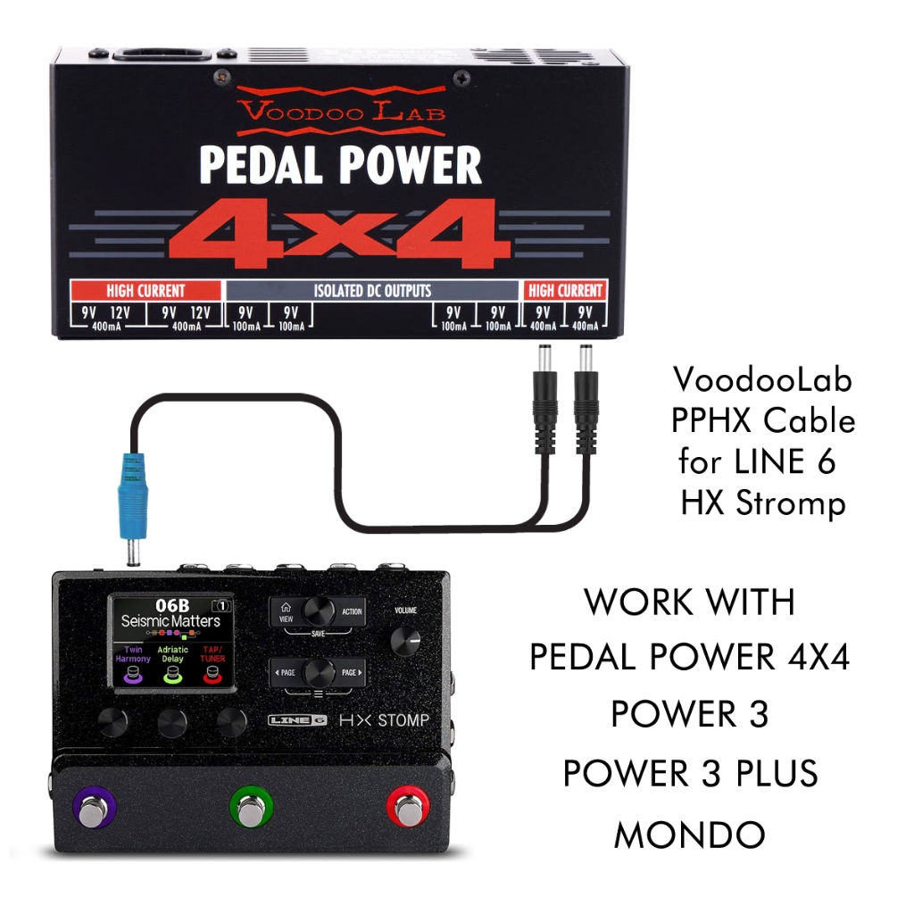 สายตัวนี้ออกแบบมาเฉพาะสำหรับ HX Stromp เพื่อใช้กับ Pedal Power ที่มีช่องออก mA ไม่พอ กับ HX Stromp โดยจะต้องเสียบไฟ DC output 2 ช่องเพื่อเพิ่มกระแสแรงดันให้สามารถใช้งานได้ ตัว HX Stromp ต้องการ กระแสแรงดันน้อยสุดที่ 800mA ถึง 1000mA โดยถ้าใช้กับ Pedal Power ของ Voodoolab คือ Pedal Power X8, Digital, 4X4, MONDO, or Pedal Power 3 series ทั้งยังสามารถใช้กับ Pedal Power ยี่ห้ออื่นได้ หากไม่แน่ใจ สามารถสอบถามเพิ่มเติมทางแชท