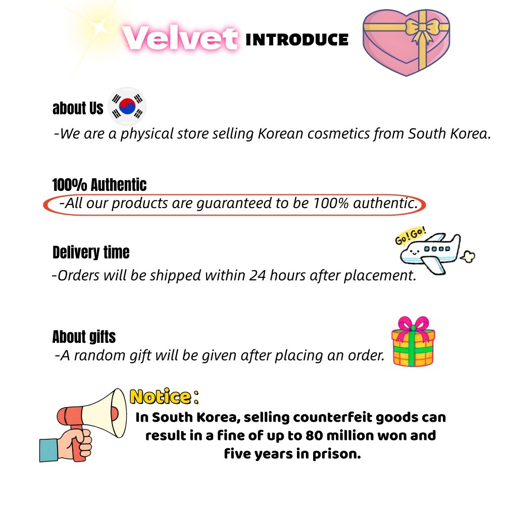 เราเป็นร้านข้ามพรมแดนเกาหลีเราเป็นร้านข้ามพรมแดนของเกาหลี ผลิตภัณฑ์ทั้งหมดจัดส่งจากเกาหลีดังนั้นคุณสามารถซื้อด้วยความมั่นใจ ผลิตภัณฑ์ของเราเป็นของแท้ 100%