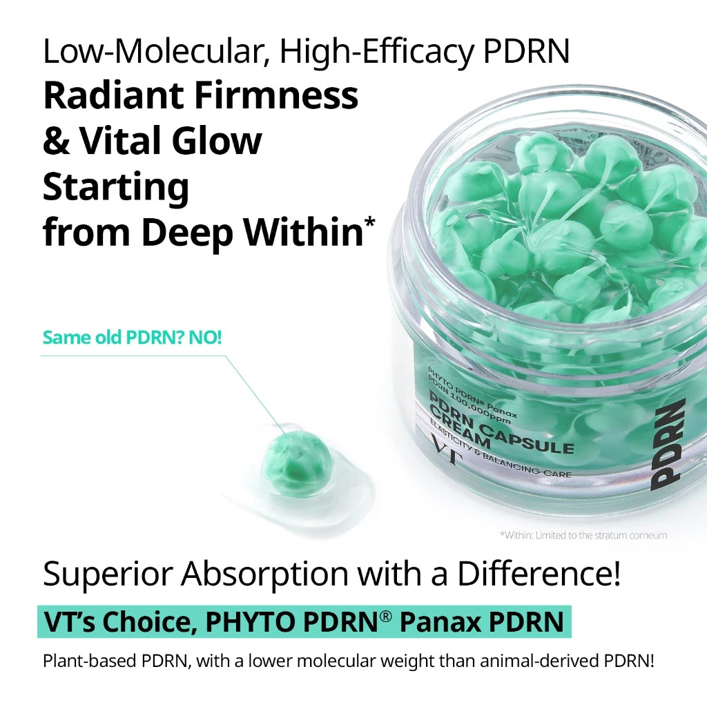 VT Cosmetics PDRN Capsule Cream 100 เป็นครีมทาหน้าสูตรพิเศษที่อุดมด้วยส่วนผสมประสิทธิภาพสูงเช่น PDRN, เซราไมด์และเปปไทด์ - สูตรพิเศษเพื่อมอบการบำรุงอย่างเข้มข้นเพิ่มความยืดหยุ่นและเปล่งประกายกระจ่างใส