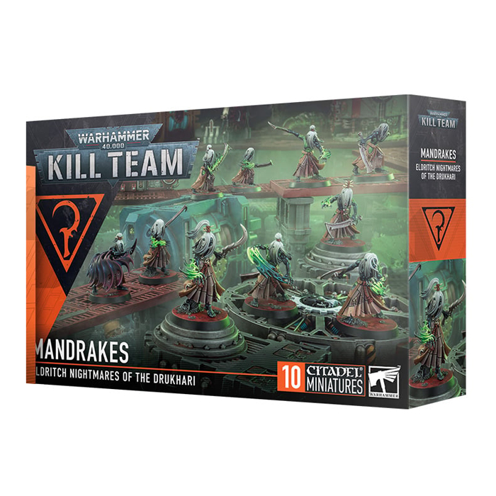 This multipart plastic kit allows you to build 10 Mandrakes, otherworldly shadow-assassins from the outer depths of the Drukhari's Dark City, Commorragh. These miniatures can be used as Mandrakes operatives in games of Kill Team, or fielded with Drukhari armies in games of Warhammer 40,000. This kit includes various weapons, heads, and accessories, allowing you to assemble a unique squad and build some as specialists for your kill team – such as a balefire-slinging Abyssal, a terrifying Nightfiend, and a greatblade-wielding Chooser of the Flesh.