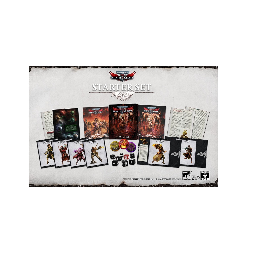 The Wrath and Glory Starter Set contains everything you need to begin roleplaying action packed adventures in the world of Warhammer 40,000. Whether this is your first tabletop roleplaying game, or you are an experienced Gamemaster, this exciting boxed set is the perfect starting point for anyone interested in Wrath and Glory. The Starter Set includes: