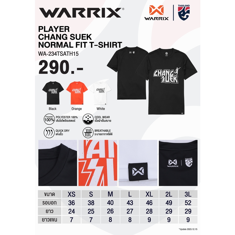 เสื้อ WARRIX T-SHIRT เสื้อยืดคอกลมแขนสั้น มาพร้อมลวดลายข้อความ CHANGSUEK ที่สกรีนลงบนตัวเสื้อ โดดเด่นไม่ซ้ำใคร ด้านหลัง สกรีนโลโก้ WARRIX กับ โลโก้ทีมชาติไทย