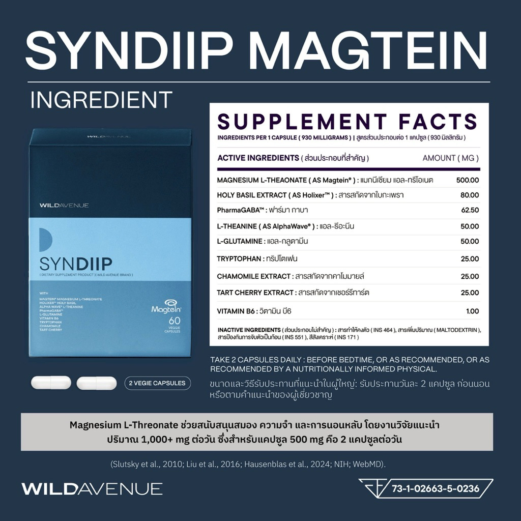 Wild Avenue SYNDIIP วิตามินเพื่อส่งเสริมคุณภาพการนอนหลับ