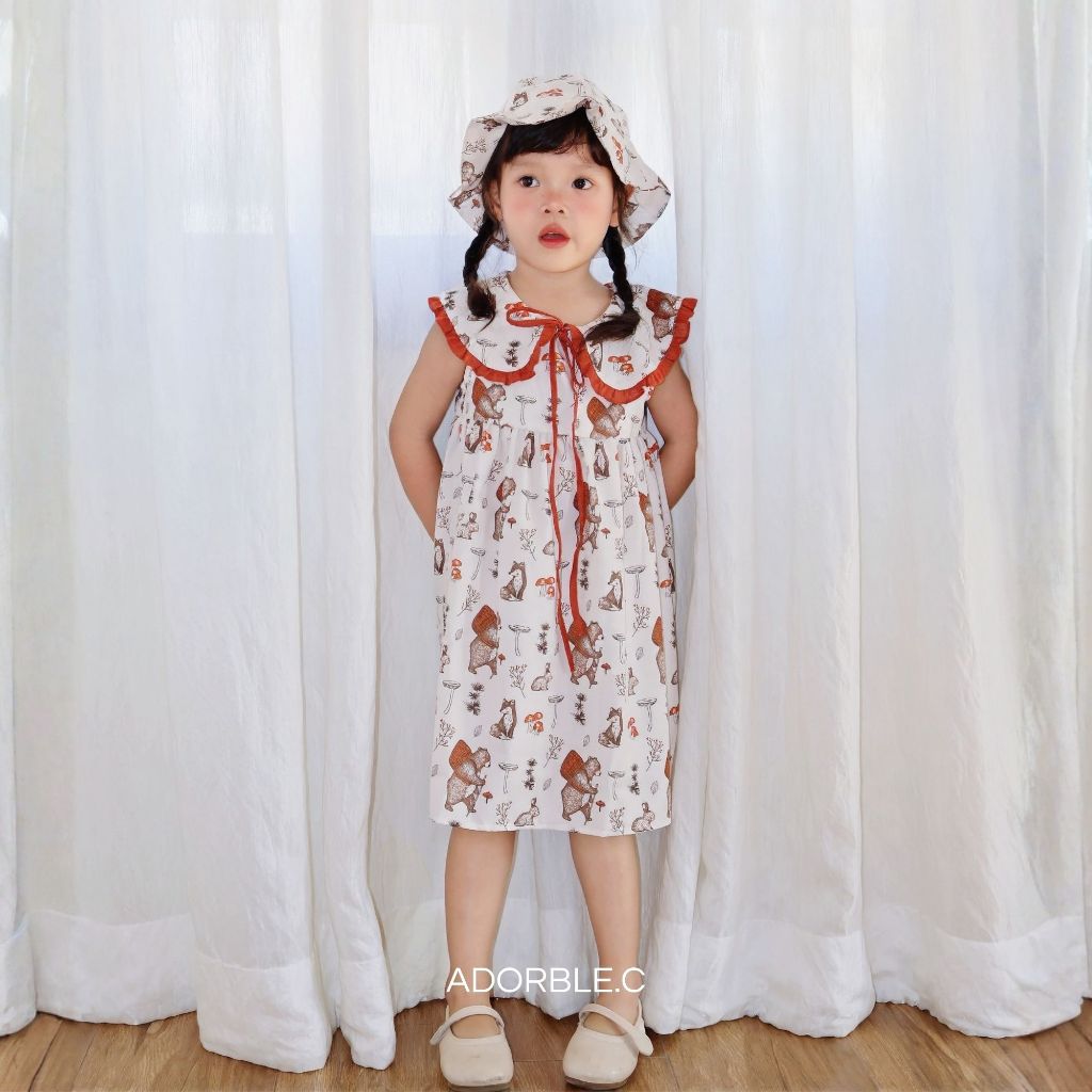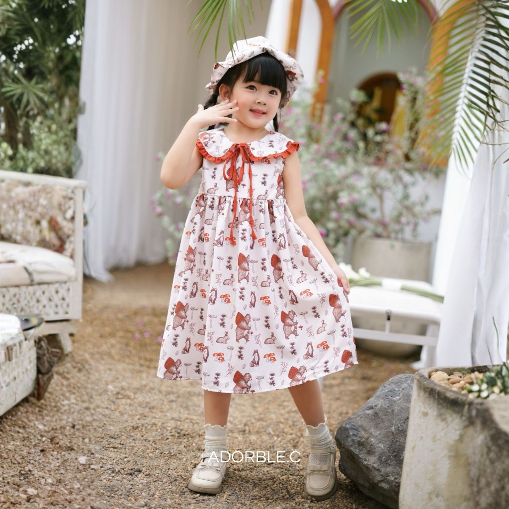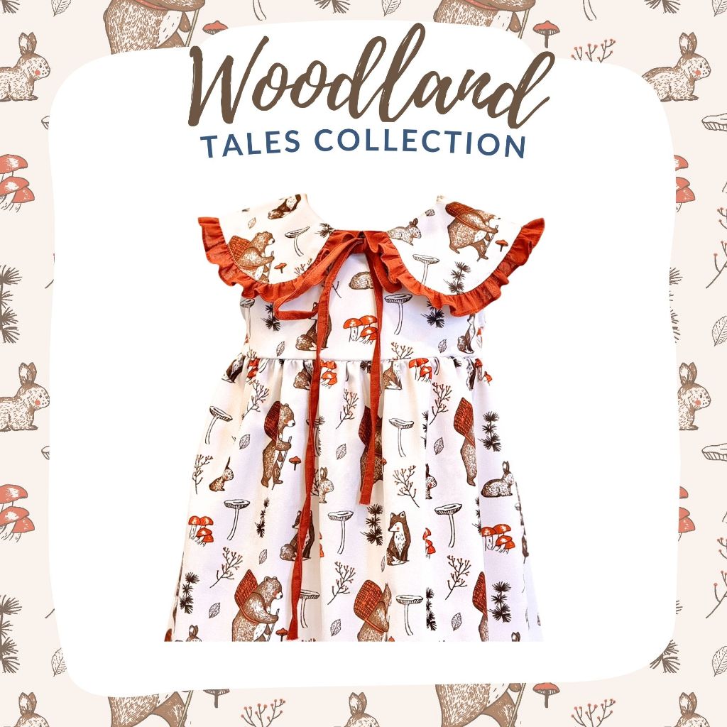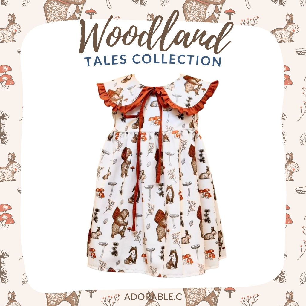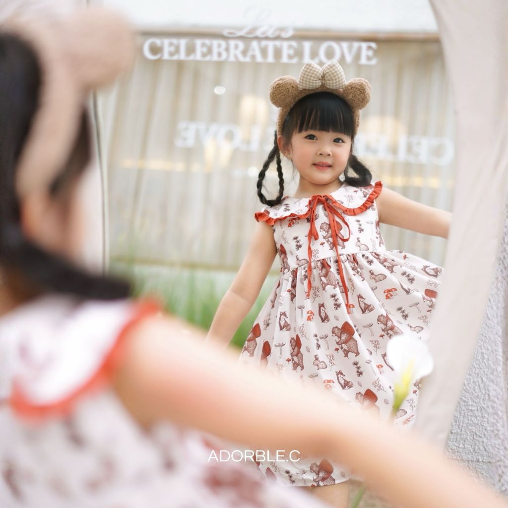 เดรสเด็กผ้าไหมอิตาลี่ พิมพ์ลาย Woodland Tale สีส้ม