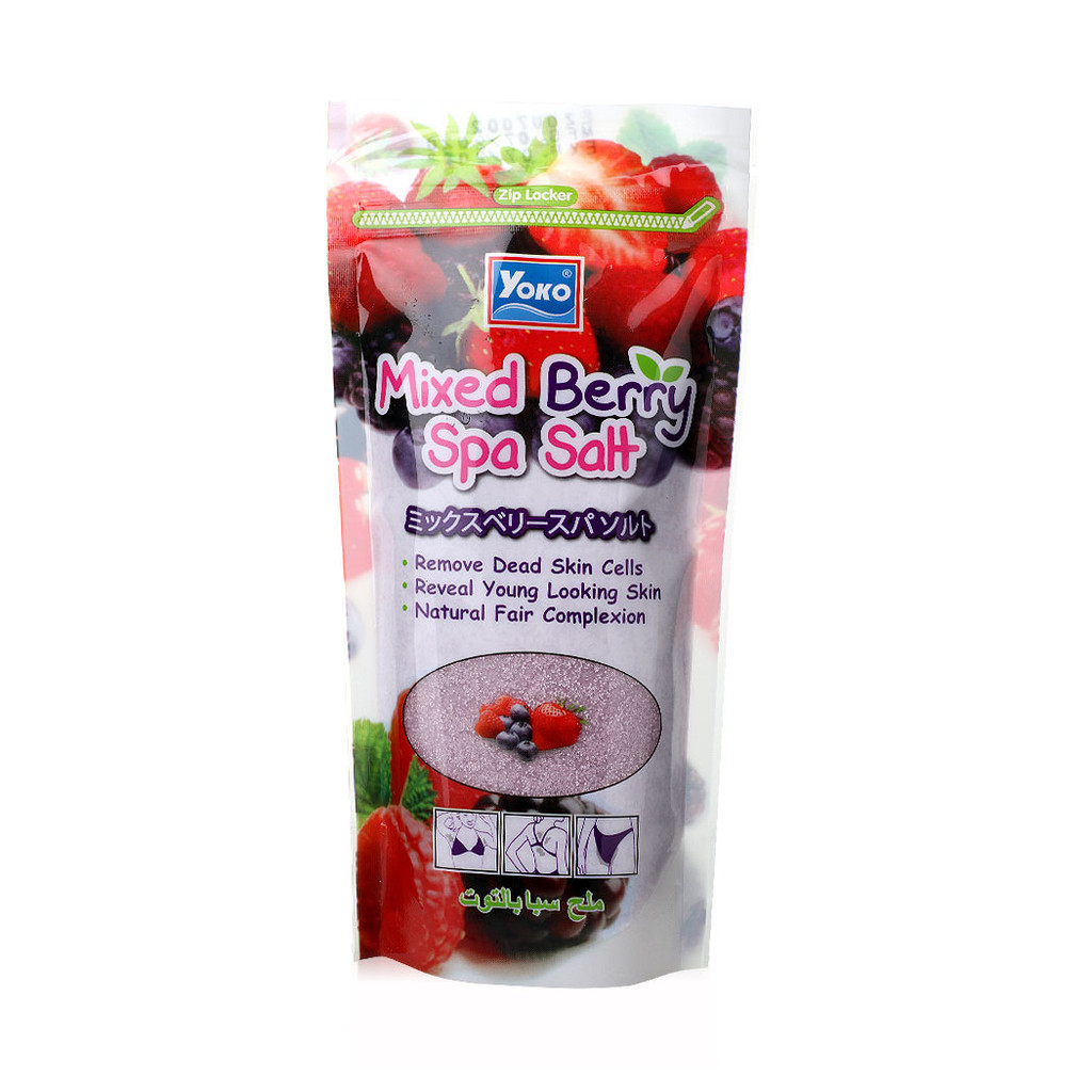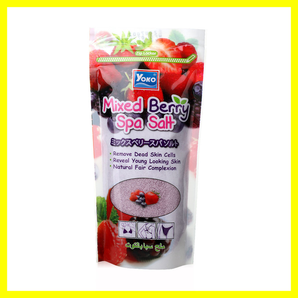 Yoko Mixed Berry Spa Salt 300g เกลือสปาขัดและผิวกาย สูตรมิกซ์เบอร์รี่ ผสานสารสกัดจากสตอเบอร์รี่ มัลเบอร์รี่ ช่วยคงความชุ่มชื้นให้แก่ผิว หลังการขัดผิว ด้วยคุณสมบัติของเกลือสปา ช่วยผลัดเซลล์ผิวเก่า พร้อมเผยผผิวใหม่เนียนลื่น สะอาด สดใส นอกจากนี้ยังอุดมไปด้วยวิตามินบี 3 และวิตามินอี พร้อมฟื้นบำรุงผิวเสียหมองคล้ำให้กลับมากระจ่างใส เนียนนุ่ม ชุ่มชื้น