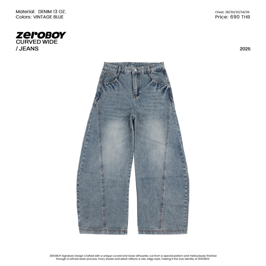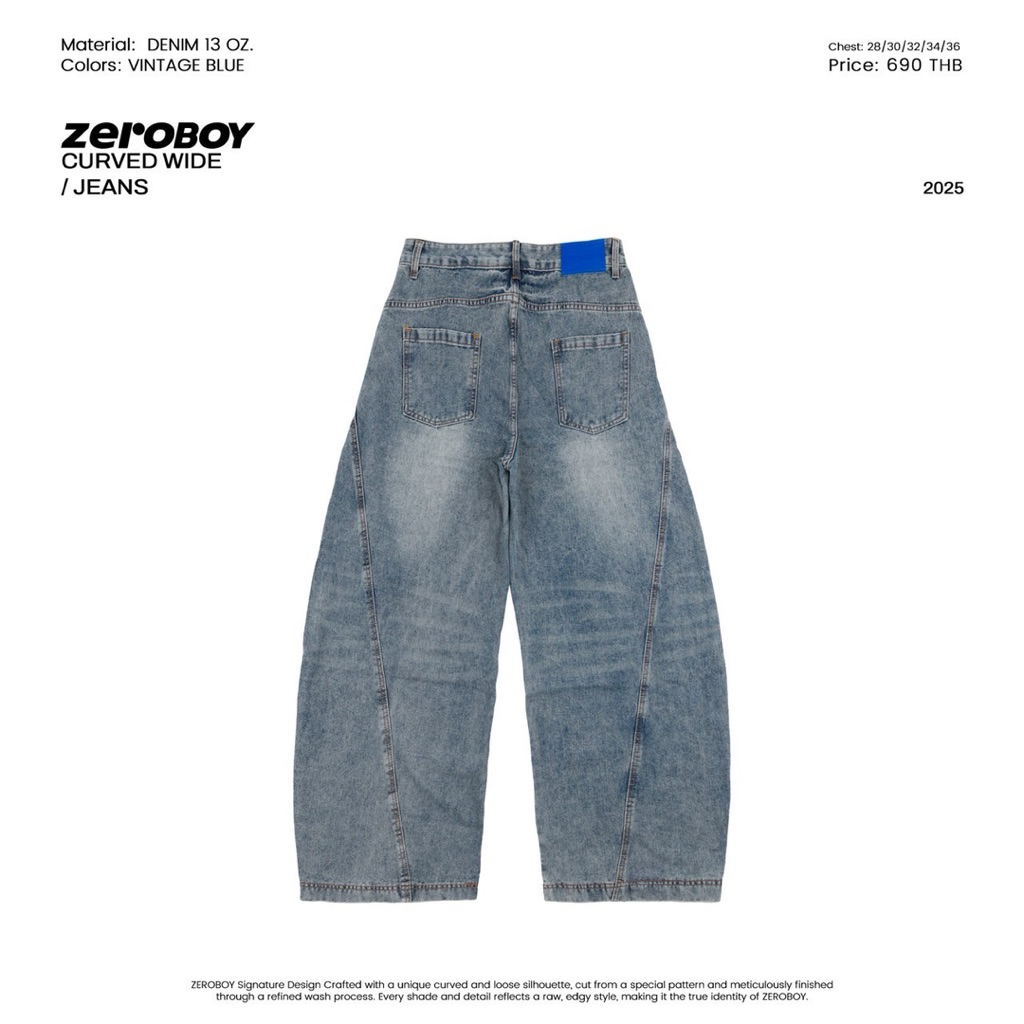 กางเกงยีนส์ทรง CURVED WIDE ซิกเนเจอร์ดีไซน์ของ ZEROBOY ที่