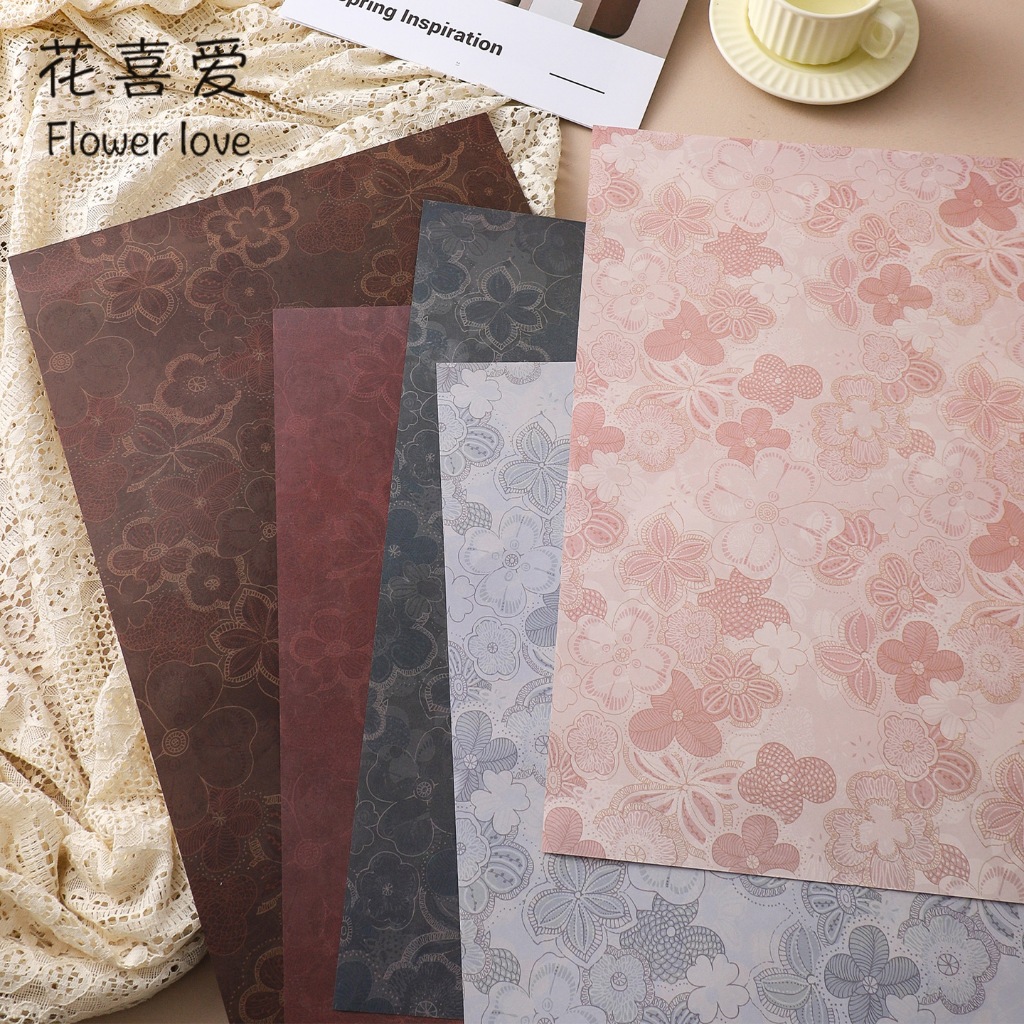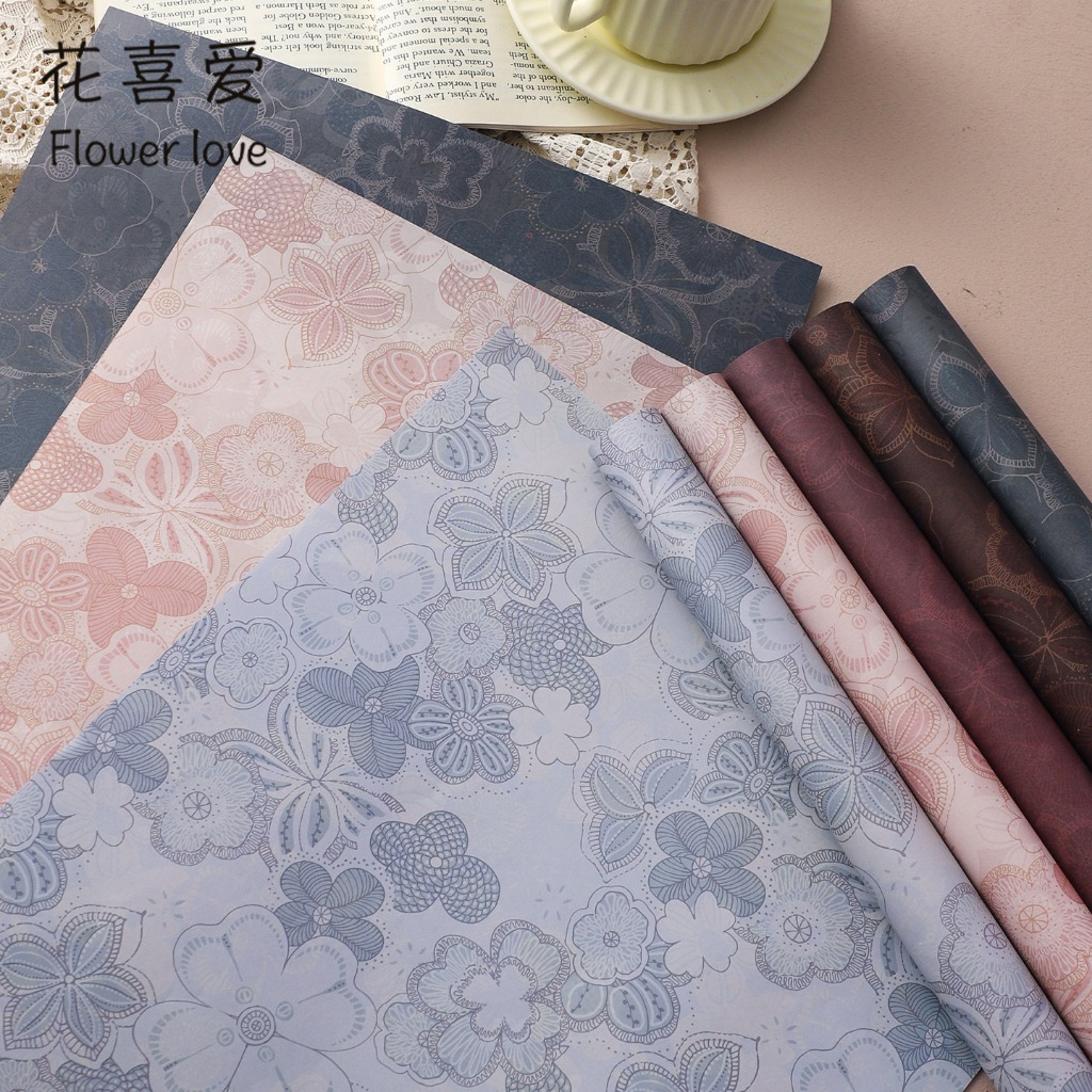 กระดาษห่อบรรจุภัณฑ์ลายดอกไม้สไตล์วินเทจ ดีไซน์สวยหรู ให้ความรู้สึกอบอุ่นแบบคลาสสิก ลวดลายดอกไม้บานสะพรั่ง เพิ่มความโดดเด่นให้กับช่อดอกไม้ ของขวัญ และงานแฮนด์เมด เหมาะสำหรับร้านดอกไม้ งานจัดดอกไม้ งาน DIY และงานแพ็กเกจจิ้งต่าง ๆ