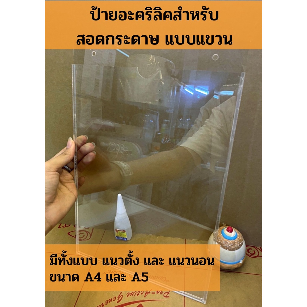 กล่องอะคริลิคแบบแขวน A3 A4 A5 ติดผนัง มีรูแขวนให้ แนวตั้งและแนวนอน ป้ายติดผนัง