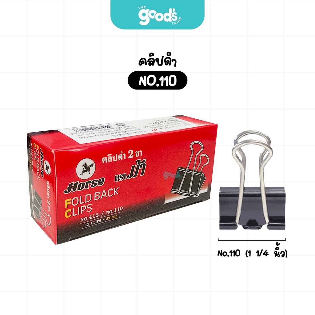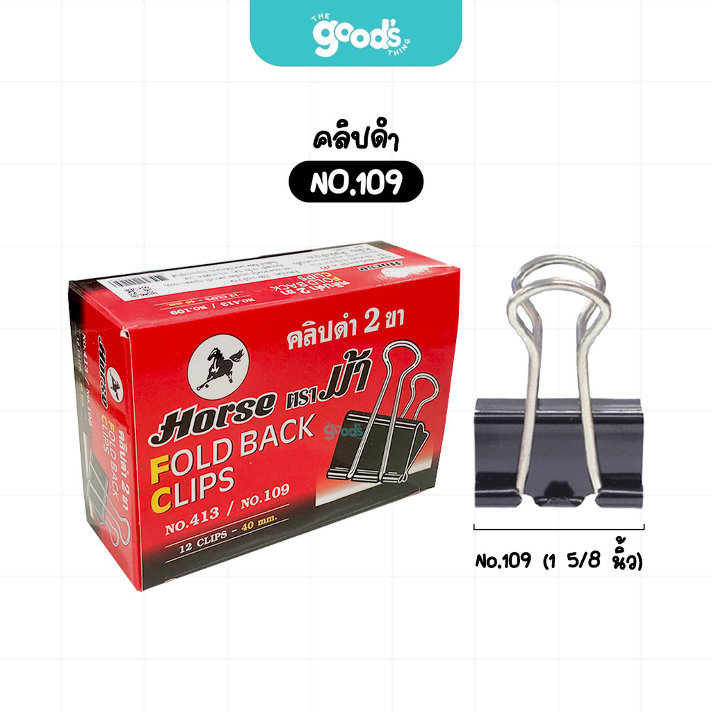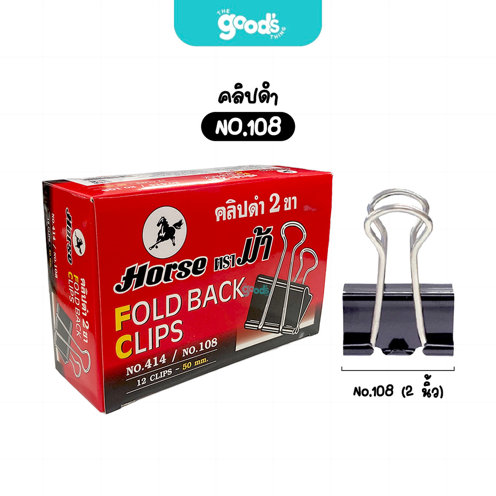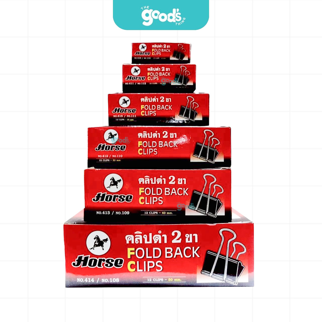 คลิปดำ ตราม้า No.108 No.109 No.110 No.111 No.112 No.113 ที่หนีบกระดาษ Horse ไม่ลอกไม่เป็นสนิม (ยกกล่อง12ตัว)