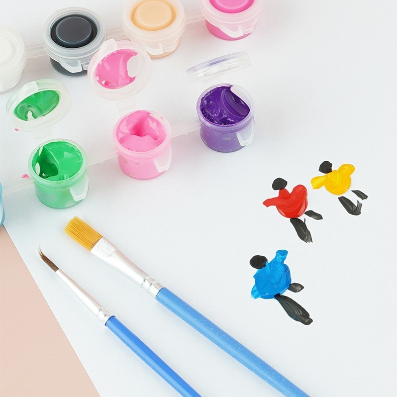 ชุดสีอคิลิค 6 สีและ 12 สี ขนาดเล็ก พร้อมพู่กันและแปรง ชุดสีน้ำ ระบายสี ปูนปั้น ภาพวาด เพนท์แก้ว