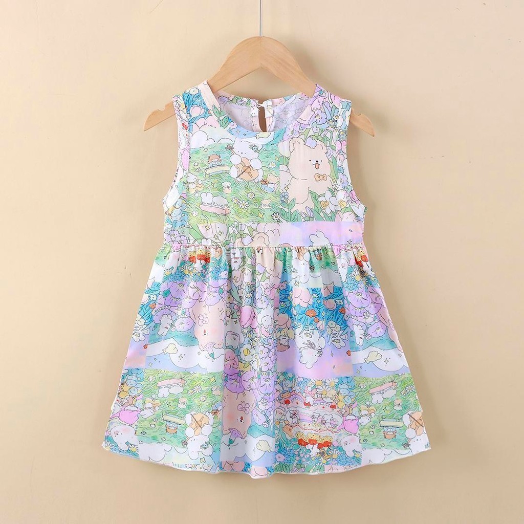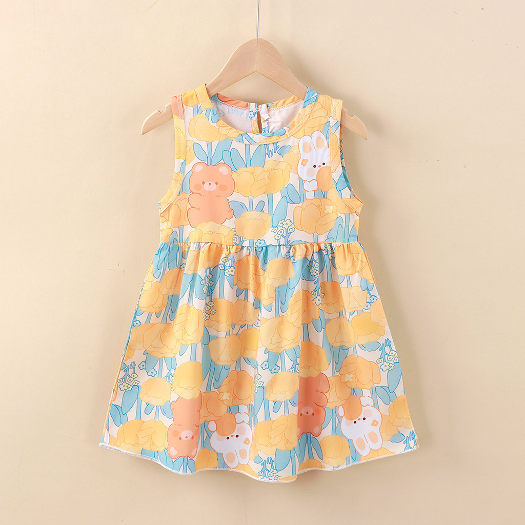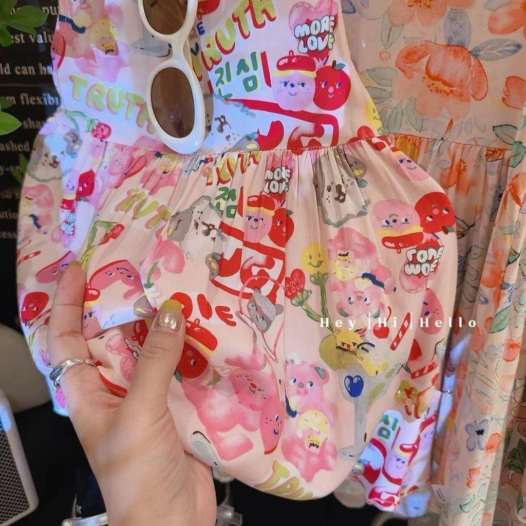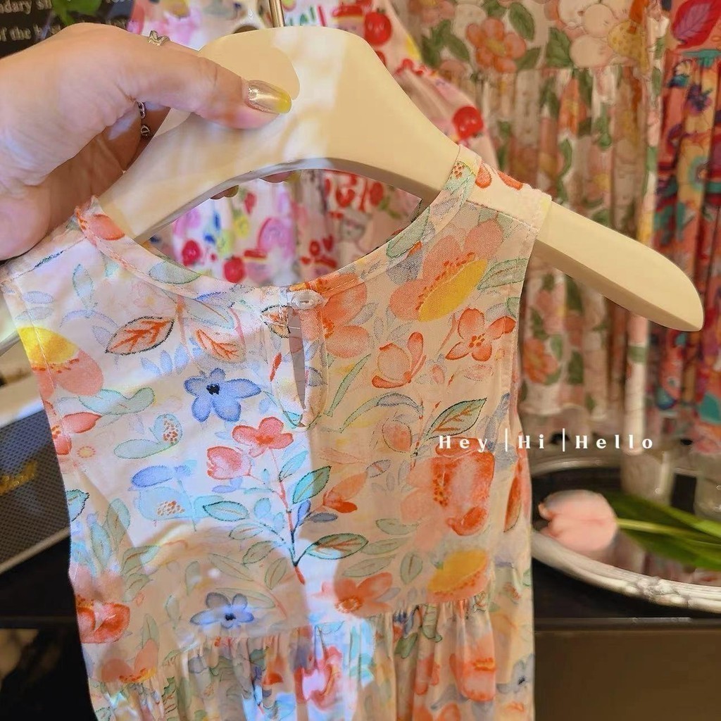 ชุดเดรสเด็กผู้หญิง พิมพ์ลายดอกไม้เจ้าหญิง สไตล์เกาหลี แฟชั่นฤดูร้อน สําหรับเด็กผู้หญิง D-H
