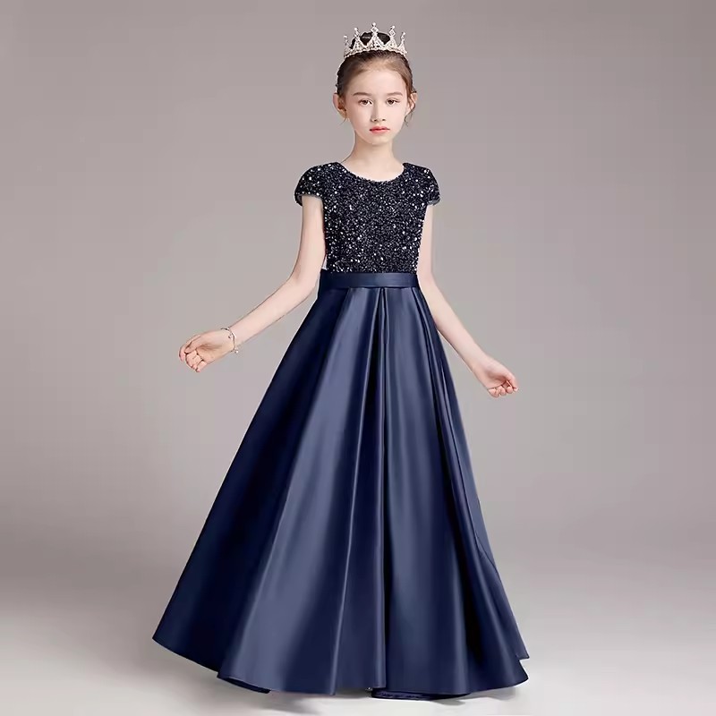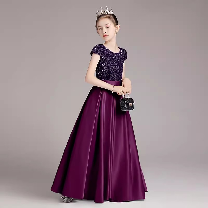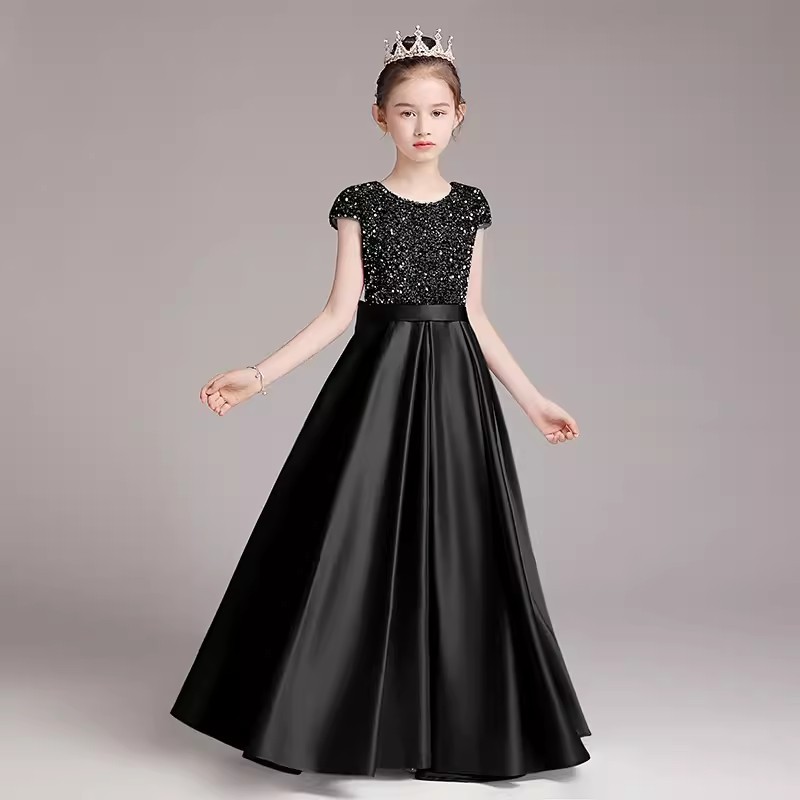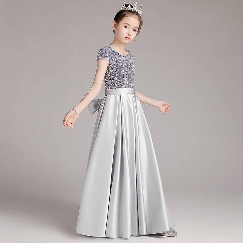ชุดเปียโนสาวใหญ่เทาประดับด้วยเลื่อมชุดการแสดงยาวชุดเจ้าหญิงเด็กโฮสต์แคทวอล์ประสิทธิภาพชุดสาวชุดไวโอลินเซลโล่ชุดที่จัดเลี้ยงชุดสาวน้อยชุดจบการศึกษา2024ฤดูใ