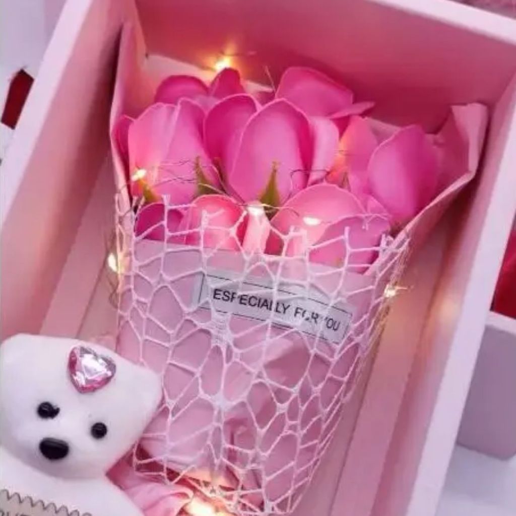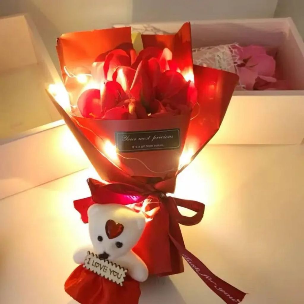 รหัสสินค้า E8 ดอกกุหลาบ 7 ดอก +ตุ๊กตาหมี+ ไฟประดับ