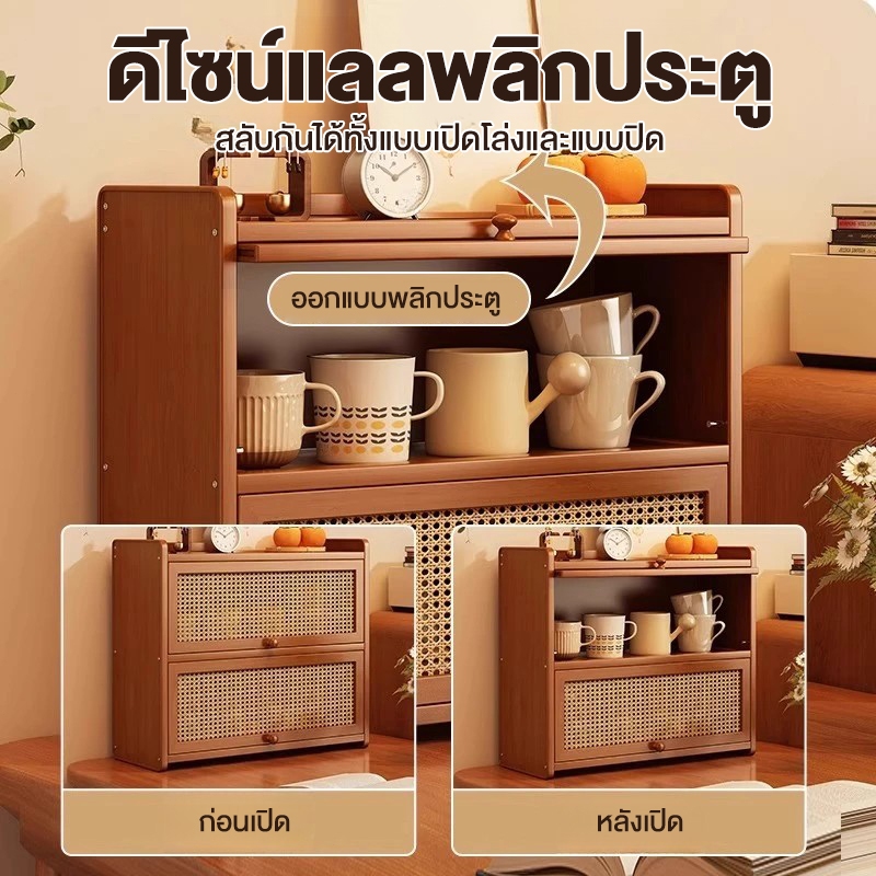 ตู้ไม้เก็บของ บานกระจก ตู้เก็บของสไตล์ญี่ปุ่น ชั้นเก็บถ้วยน้ำ ตู้เก็บของ การจัดเก็บที่ดีเยี่ยม MICI