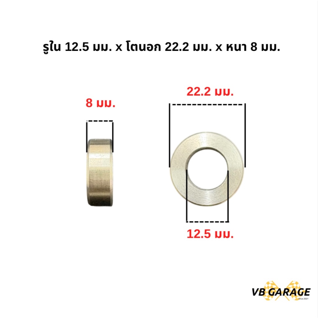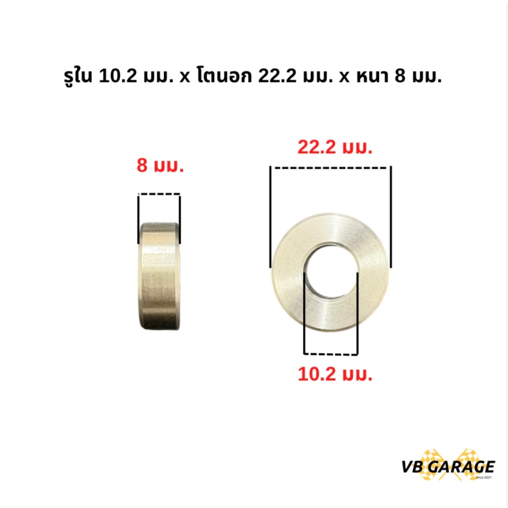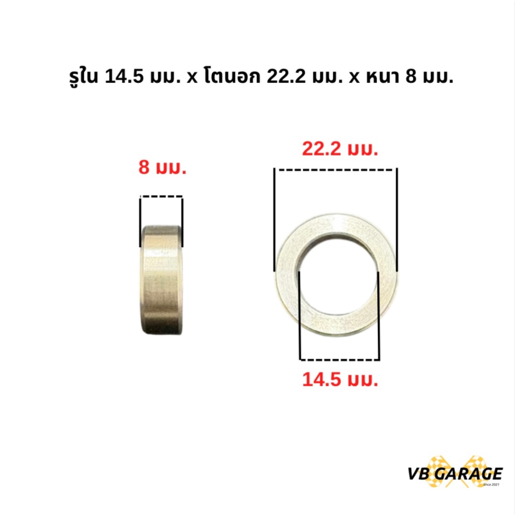 บูชสแตนเลส 304 บูชแกนโช้ค แหวนรองสแตนเลส บูชรองเบ้าบอลจ๊อย โตนอก 22.2 mm. หนา 8 mm.