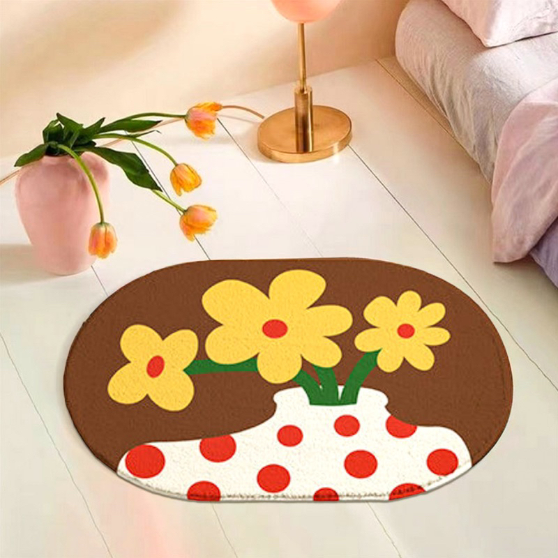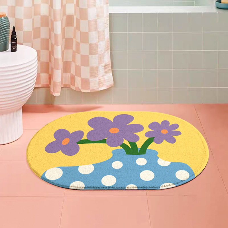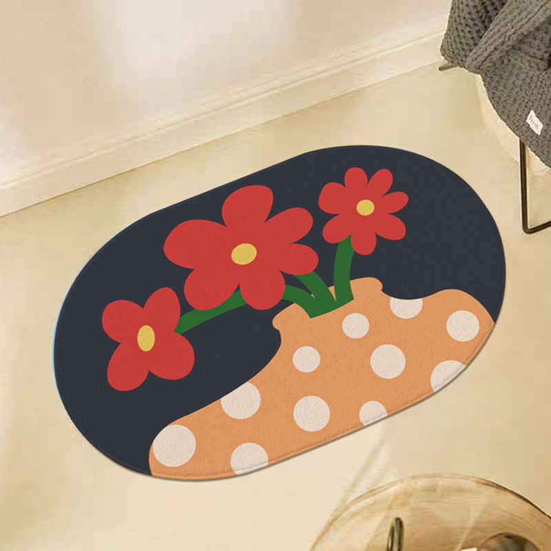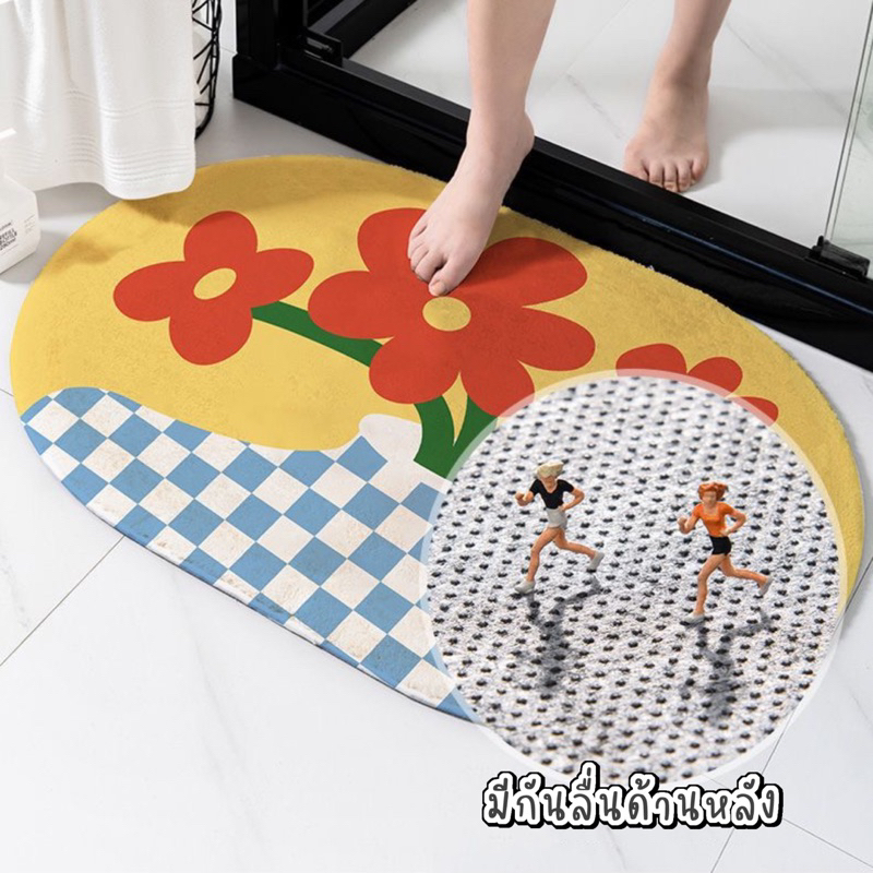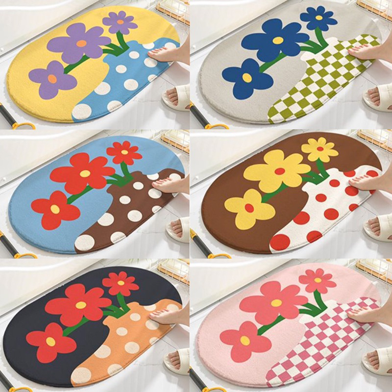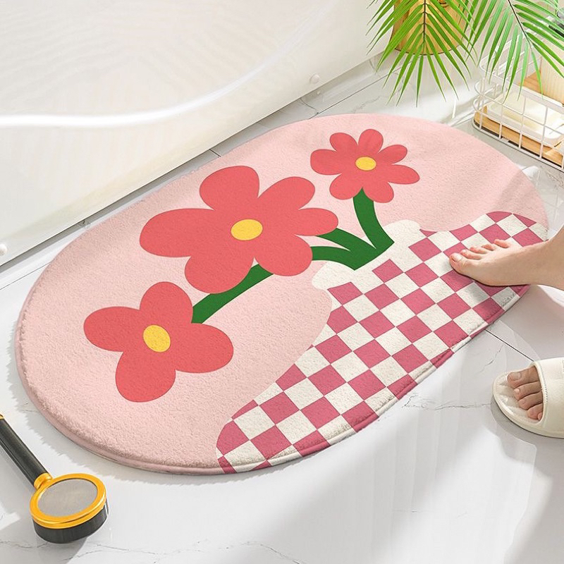พรมเช็ดเท้า ห้องน้ำ ลายดอกไม้ เกาหลี มินิมอล พรมห้องน้ำ พรมปูพื้นห้องนอน ขนนุ่มนิ่ม มีกันลื่น ซึมซับน้ำดี พร้อมส่ง. 💗