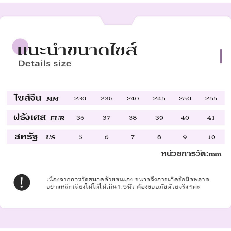 ●สินค้าวัดด้วยมือ สินค้าจริงอาจคลาดเคลื่อนจากตารางเทียบไซส์ 1CM