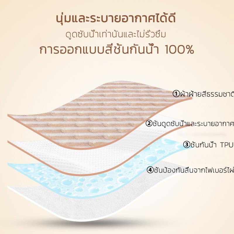 📌ที่สำคัญเลย คือ เป็นผ้าธรรมชาติ (ผ้าcotton ผสมเยื่อไผ่) ช่วยระบายอากาศได้ดี ช่วยให้นอนหลับสบาย ไม่ร้อนเหมือนผ้ารองพลาสติกทั่วไป