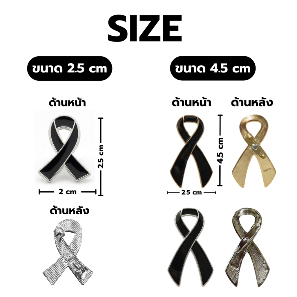🖤 เข็มกลัดริบบิ้นสีดำ (แบบกลัดหมุด)