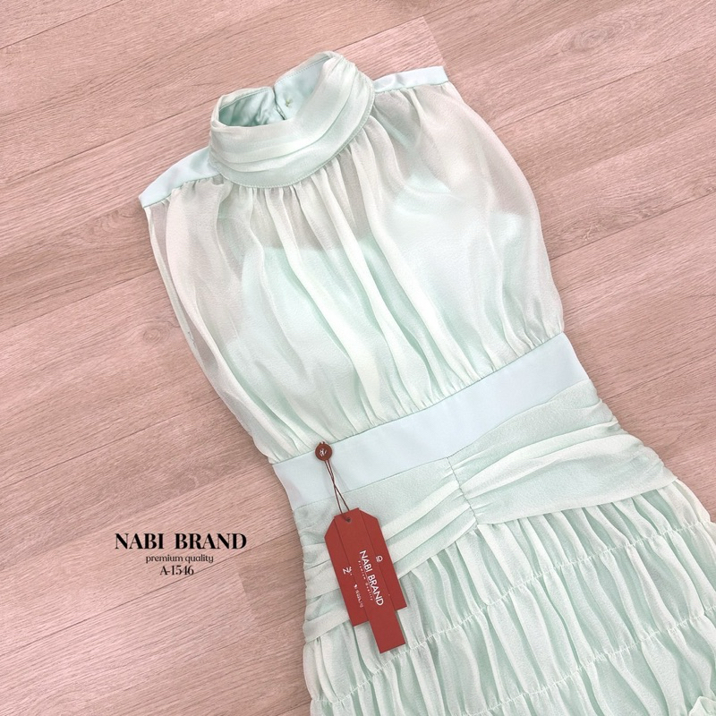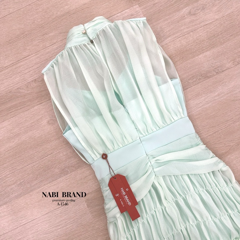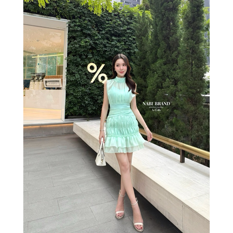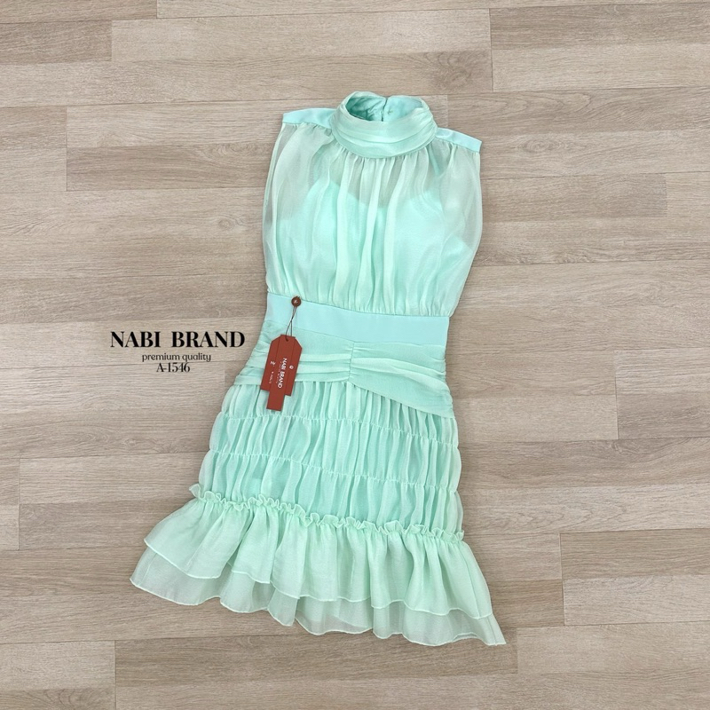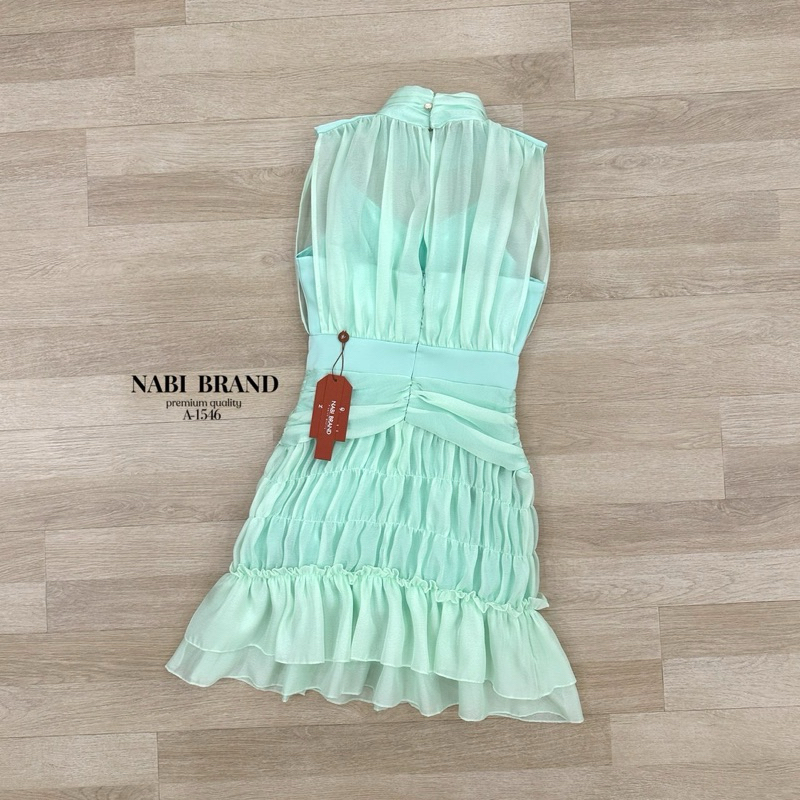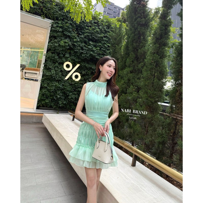 พร้อมส่ง•NABI•มินิเดรสชีฟองสีเขียวละมุน ทรงแขนกุดผ้าสองชั้น