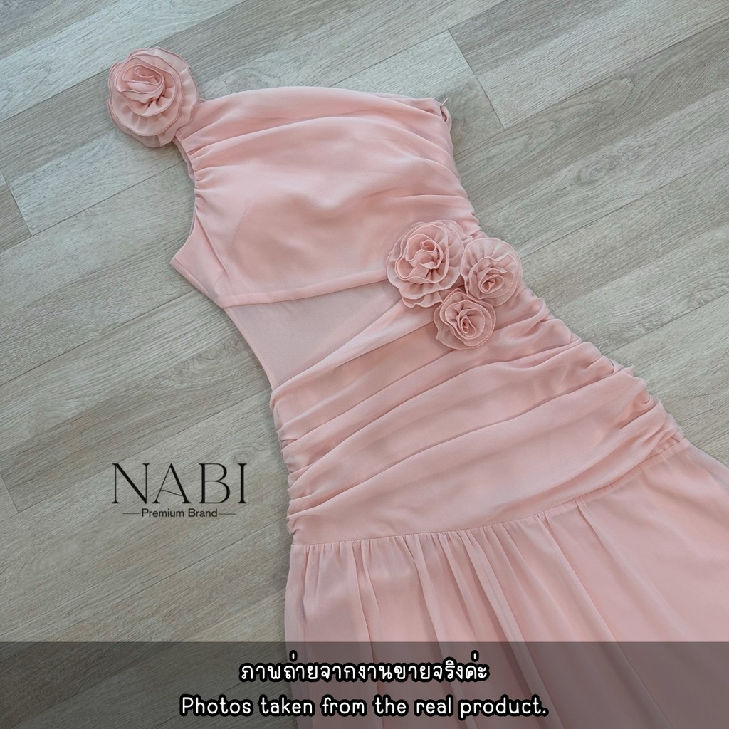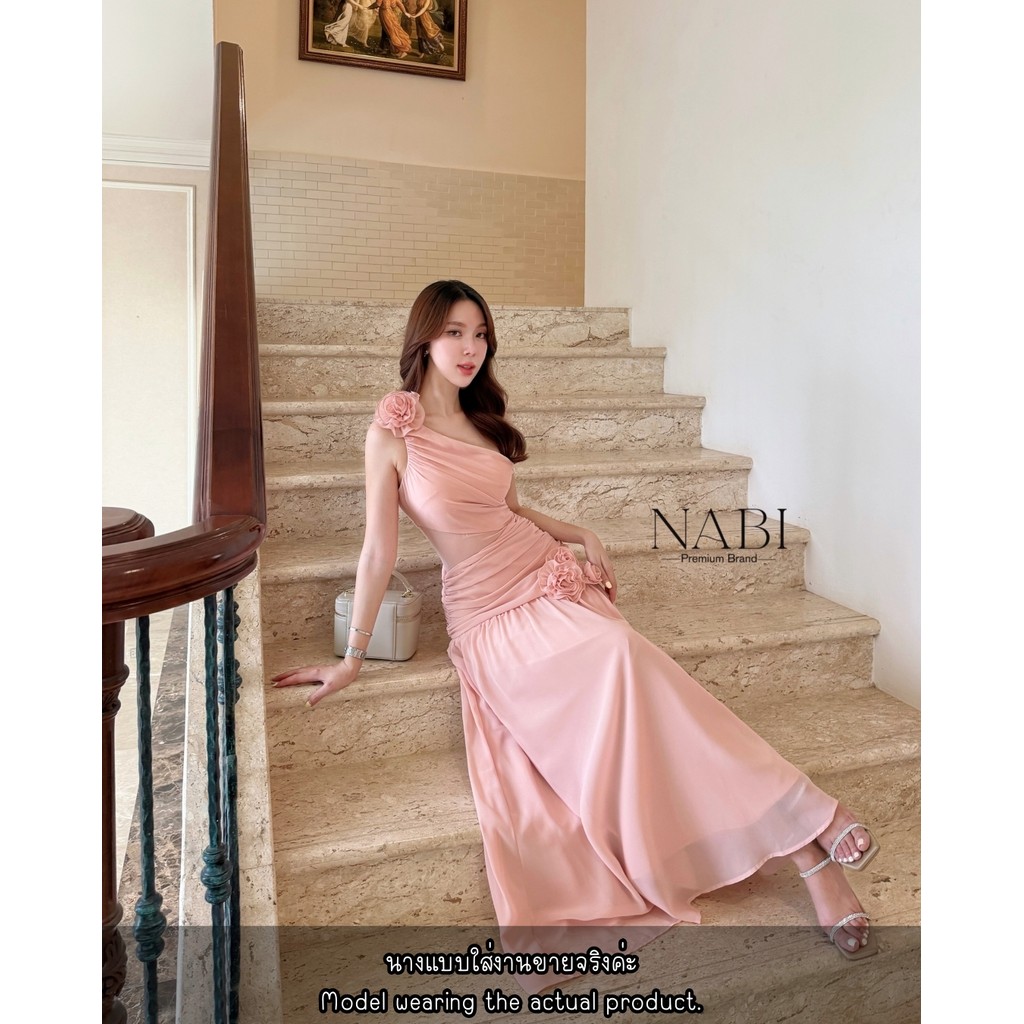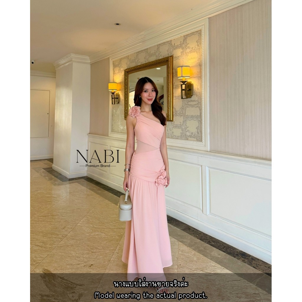 พร้อมส่ง❥XS-XL เดรสออกงานยาวสีชมพูพีช งานป้าย NABI ชุดราตรี ชุดเพื่อนเจ้าสาว ชุดไปงานแต่ง เดรสหรูดูแพง