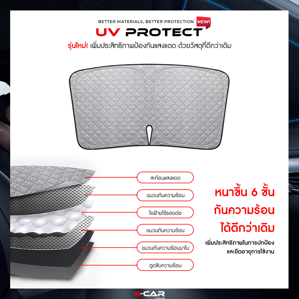 กับวัสดุที่มีประสิทธิภาพมากยิ่งขึ้น หนาขึ้นถึง 6 ชั้น ช่วยให้กันความร้อนดีขึ้น ไม่เก็บความร้อน ใช้งานและจัดเก็บง่าย สั่งตัดได้ทุกรุ่น