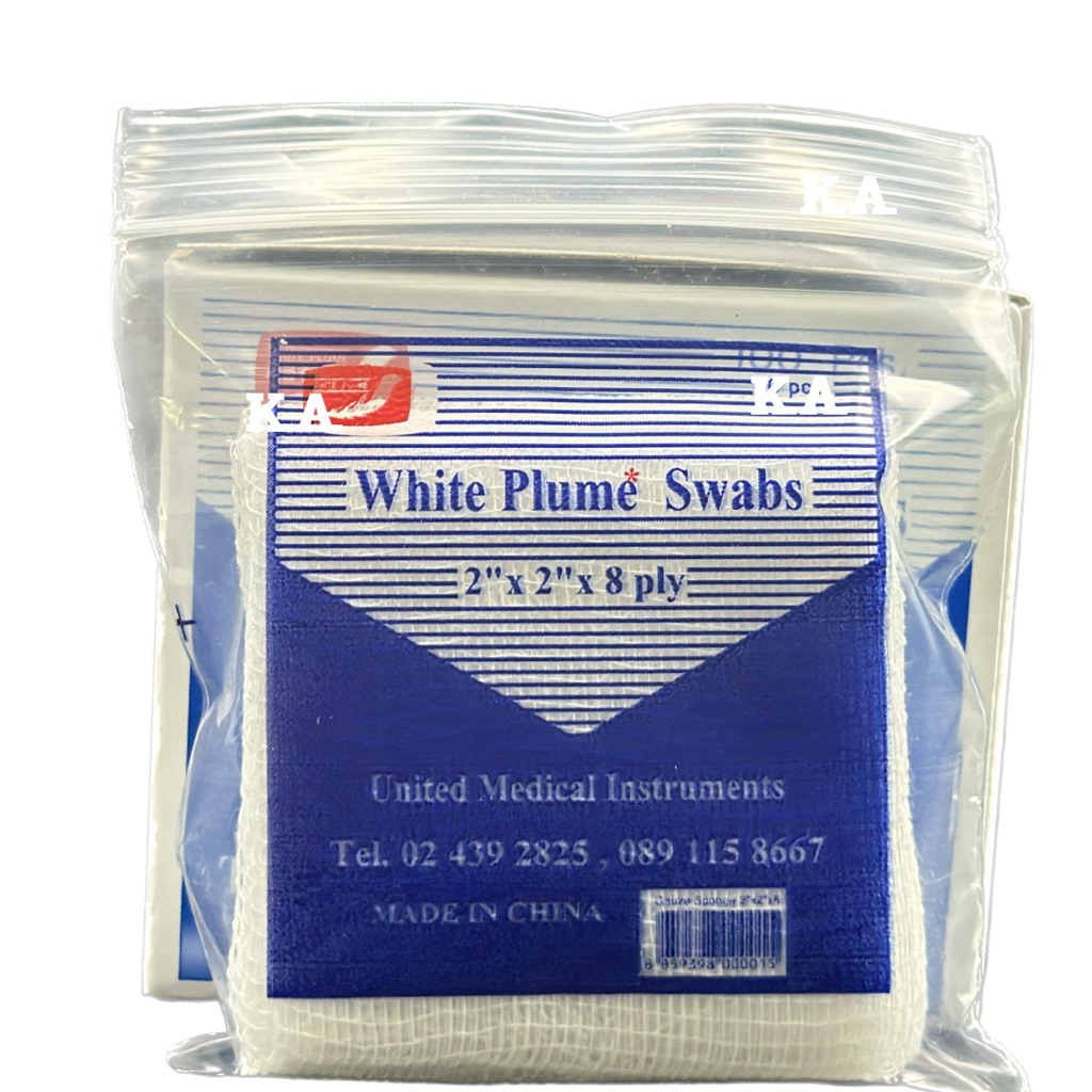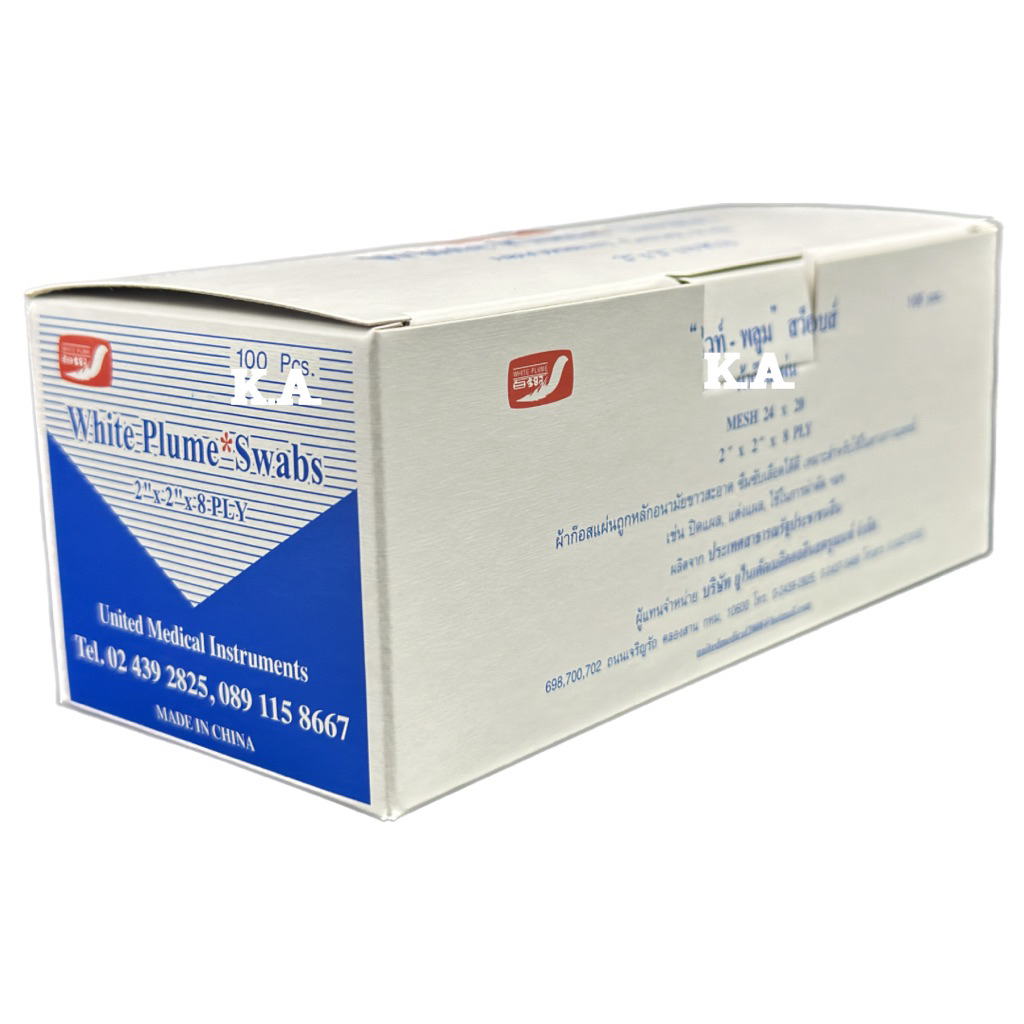 ผ้าก๊อสแผ่น ผ้าก๊อซปิดแผล Gauze White Plume Swaps (ไวท์ พลูม สว็อบส์)