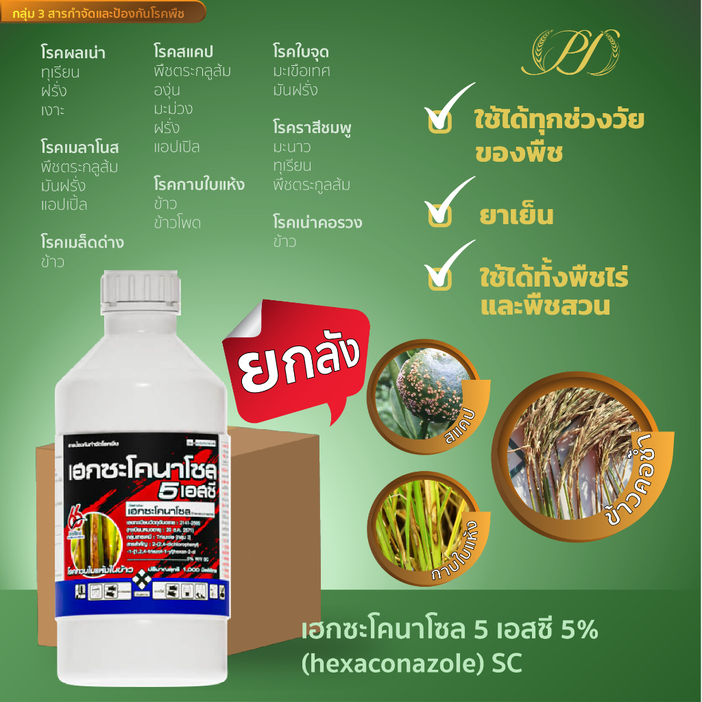 (ยกลัง) เฮกซะโคนาโซล 5% SC 1ลิตร 12 ขวด ป้องกันเชื้อราและแอนแทรคโนส