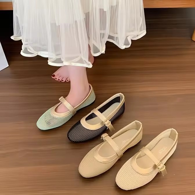 รองเท้าแมรี่เจน ทรงตาข่ายสายคาดหน้า สวย สบาย ไม่กัดเท้าระบายอากาศ พร้อมส่งจาก กทม. Mary jane shoes