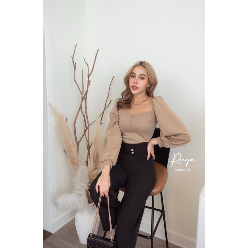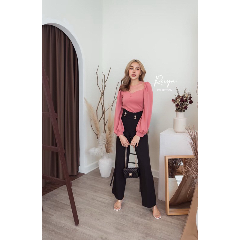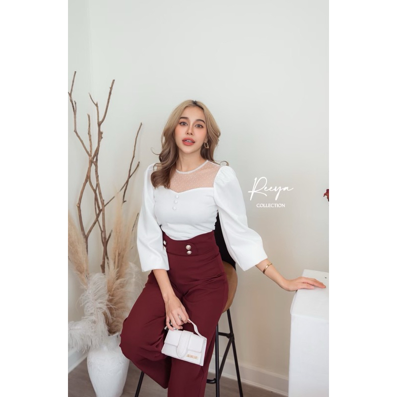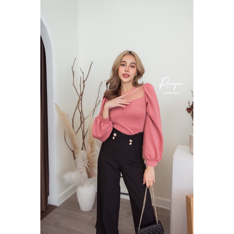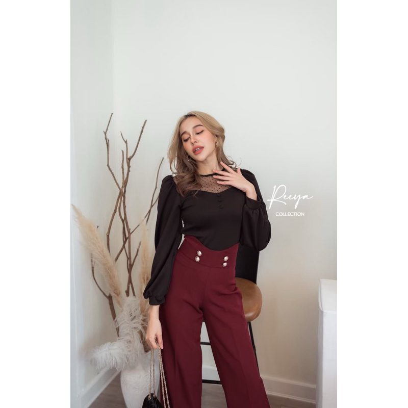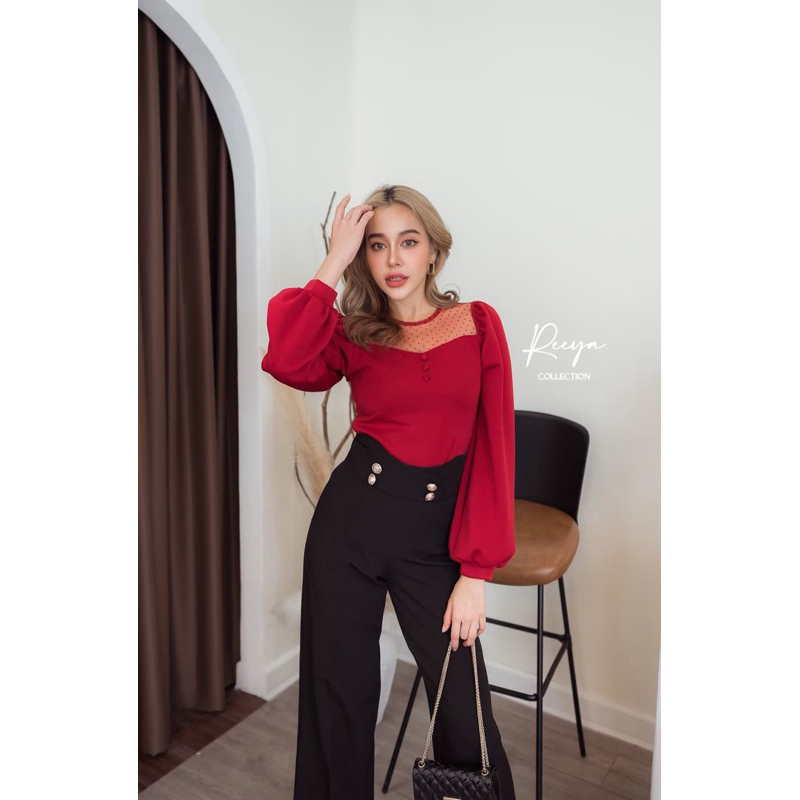 เสื้อคอกลมแขนยาว ลุคสาวหวานเรียบร้อย ดีเทลจับจีบหัวไหล่ ช่วงคอแต่งผ้าเน็ตเนื้อนิ่มซีทรูลายจุดเพิ่มความเก๋ (ไม่คัน) แต่งกระดุมปั๊มด้านหน้า ทรงสวย เนื้อผ้ายืดออริจินอลสวมใส่ง่ายมีซิปซ่อนข้างลำตัว มีกระดุมที่คอด้านหลังเสื้อแมทช์ง่ายได้ลุคสาวหวานละมุนที่สุด เป็นอีกหนึ่งรุ่นที่ต้องมีติดตู้นะค่ะ