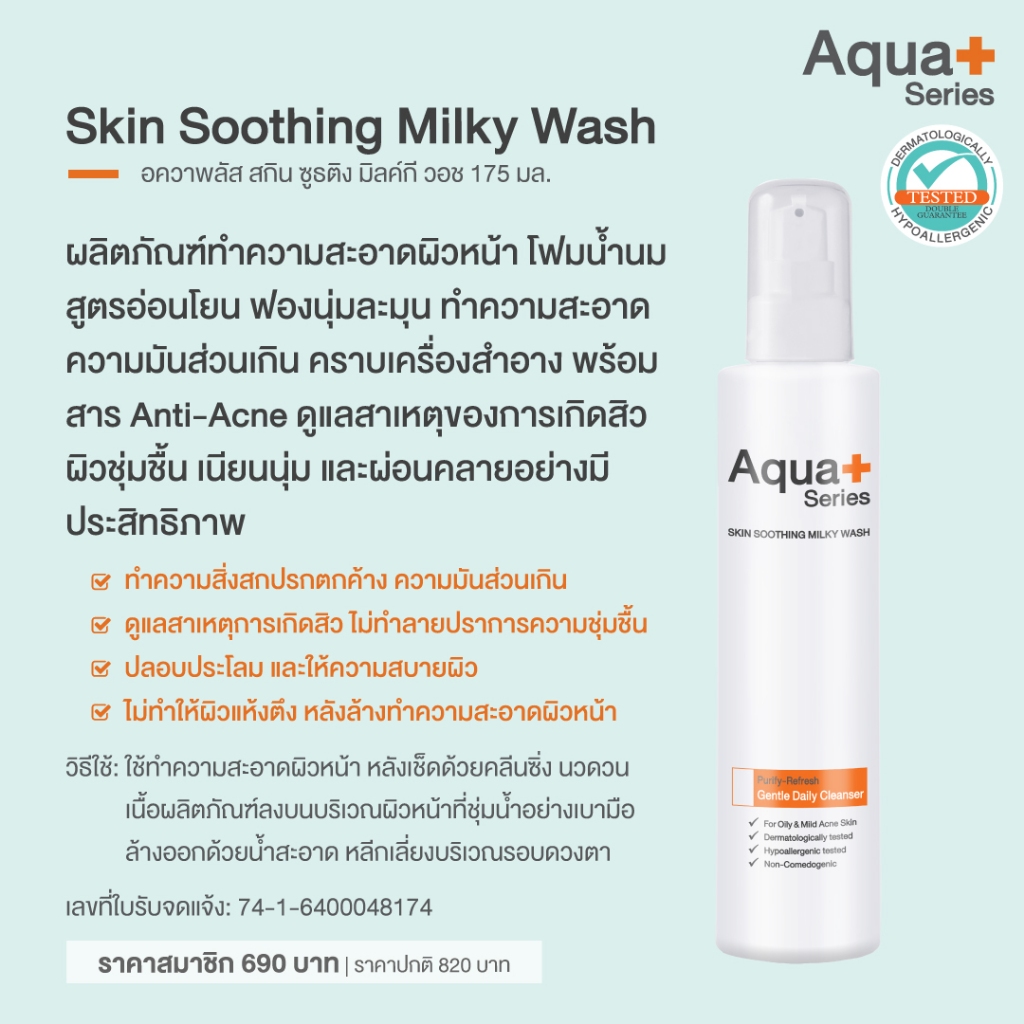(ส่งฟรี) Aqua+ Series Skin Soothing Milky Wash 175 ml. โฟมล้างหน้าสูตรน้ำนม (2 ขวด)