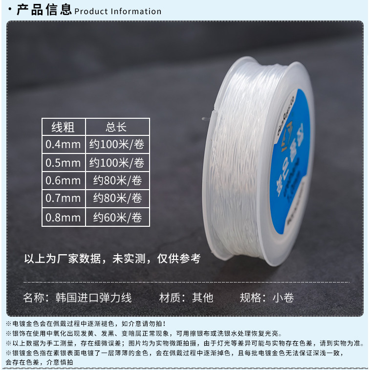 เกาหลีใต้นําเข้าด้ายยืดหยุ่น0.4/0.5/0.6/0.8มิลลิเมตรคริสตัลใสดึงแตกสร้อยข้อมือยืดหยุ่นลูกปัดด้าย
