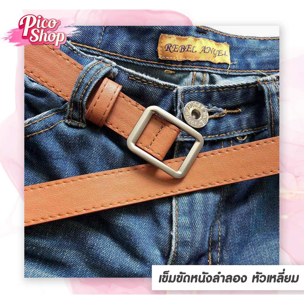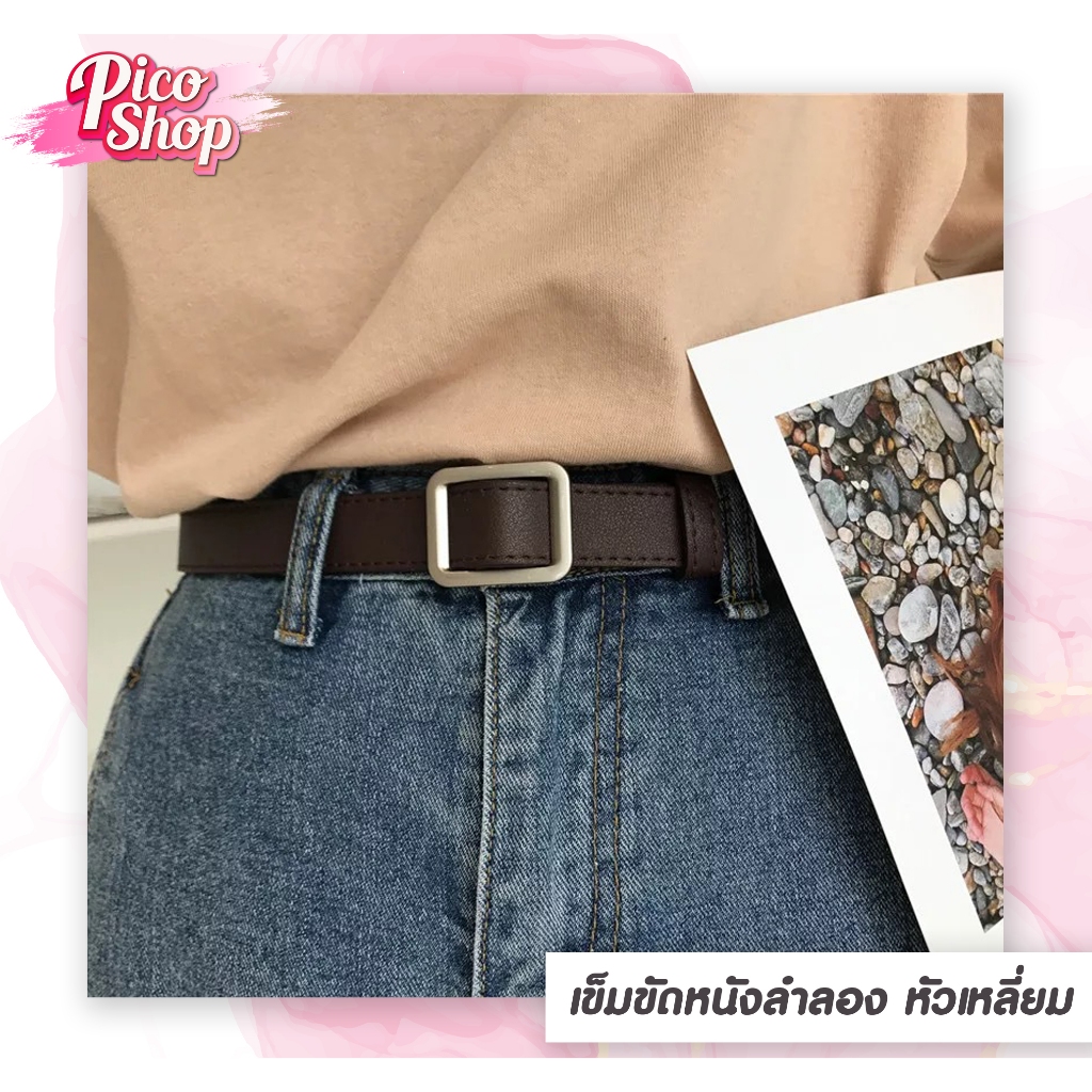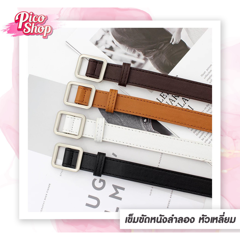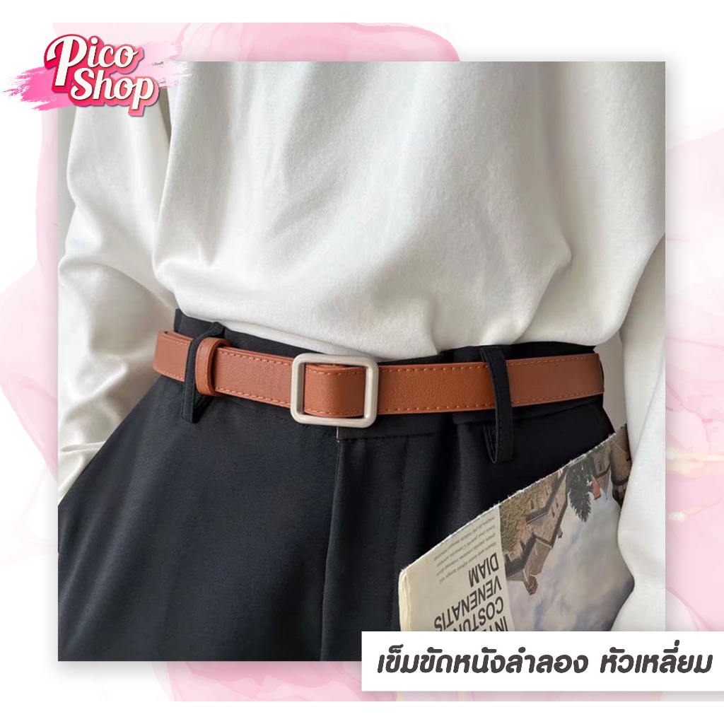 เข็มขัดผู้หญิง PU เข็มขัดหัวเหลี่ยม แฟชั่น เรียบหรู ไม่ต้องเจาะรู มี 4 สี L1 ⭐️[ถูกสุด]⭐️