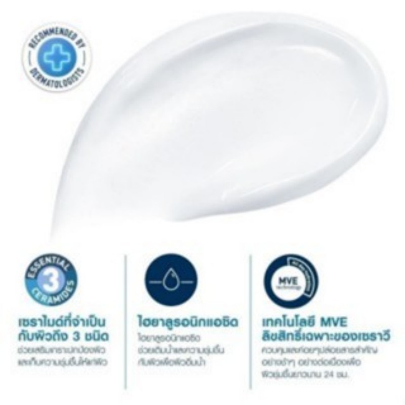 "CeraVe Moisturising Cream /340/454gครีมบำรุงผิวหน้าและผิวกาย สูตรสำหรับผิวแห้งถึงแห้งมาก เนื้อครีมเข้มข้น ซึมซาบเร็ว ไม่เหนียวเหนอะหนะ ช่วยเติมเต็ม 3 เซราไมด์ที่จำเป็นต่อผิว พร้อมด้วยเทคโนโลยี MVE ลิขสิทธิ์เฉพาะของเซราวี ค่อยๆ กระจายส่วนผสมของไฮยาลูโรนิค แอซิดและเซราไมด์สามชนิดที่จำเป็นลงสู่ผิวได้ต่อเนื่องตลอดวัน เหมาะสำหรับผิวบอบบางแพ้ง่าย เนื้อครีมสูตรปราศจากน้ำมันและปราศจากน้ำหอมที่มีส่วนผสมของเซราไมด์ช่วยกักเก็บความชุ่มชื้นให้แก่ผิว ขณะช่วยฟื้นฟูผิวให้แลดูสุขภาพดี