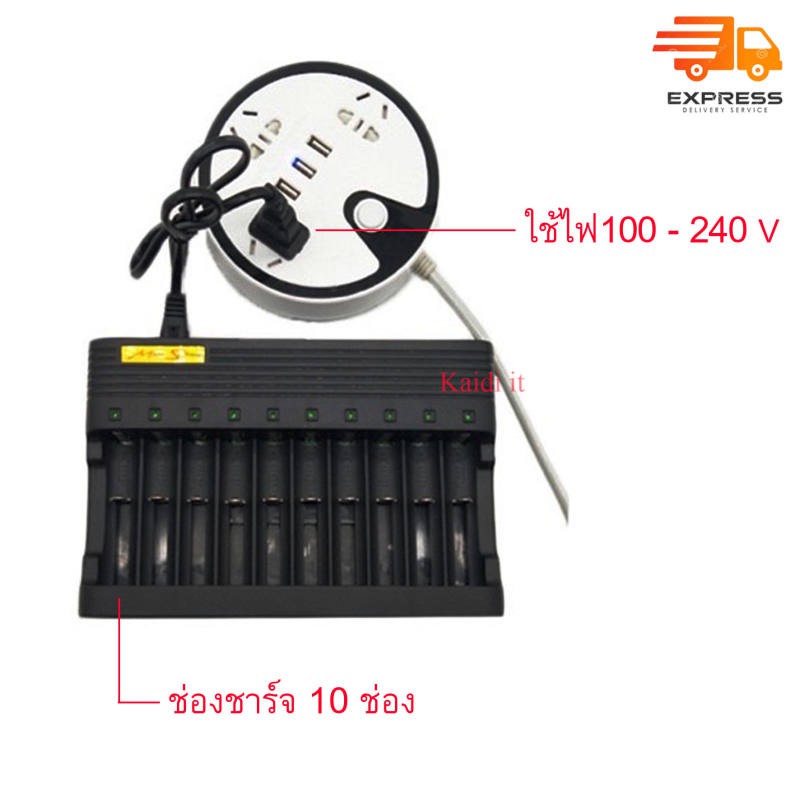 แท่นชาร์จถ่าน 18650,26650,14500,16340 แบบ 10 ช่อง รองรับถ่าน 3.7v-4.2v ไม่รองรับ AA และ AAA