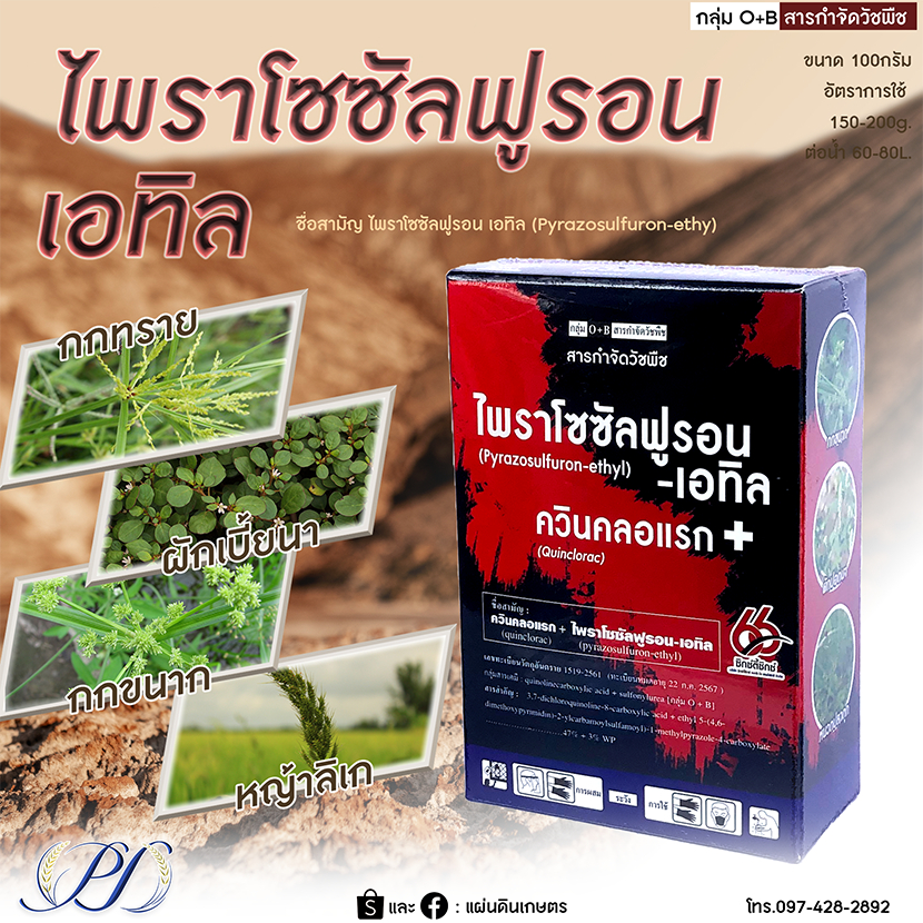 ไพราโซซัลฟูรอน เอทิล 3% +ควินคลอแรก 47% WP 100 กรัม กำจัดหญ้าในนาข้าว ใบแคบ ใบกว้าง