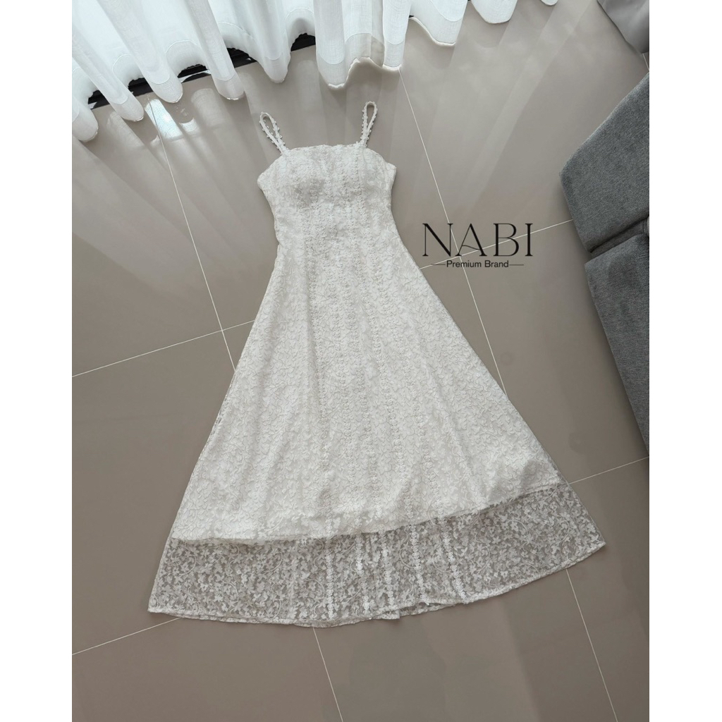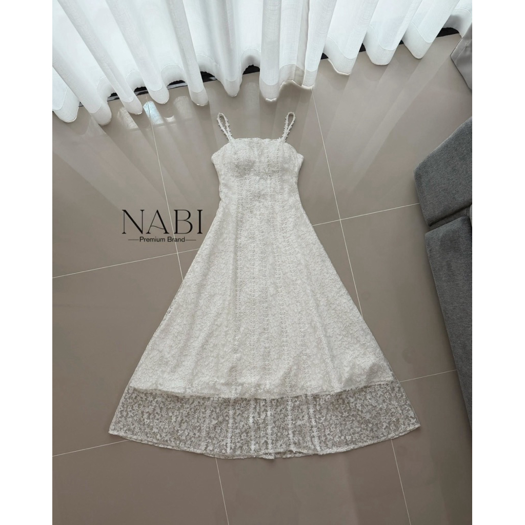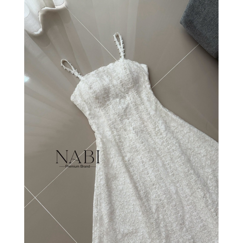𝐍𝐀𝐁𝐈 𝐁𝐑𝐀𝐍𝐃 เดรสยาวสายเดี่ยวลูกไม้ ผ้าลูกไม้อย่างดี ใส่ซับในยาวทั้งชุด ช่วงอกเสริมฟองน้ำ ด้านหลังปรับสายได้ค่ะ