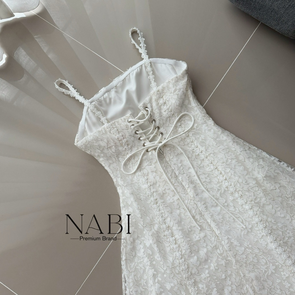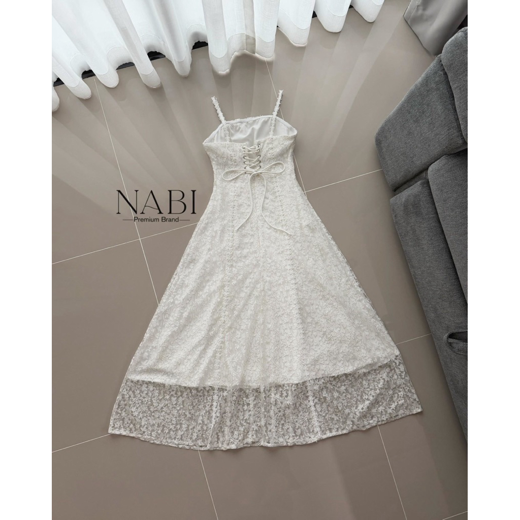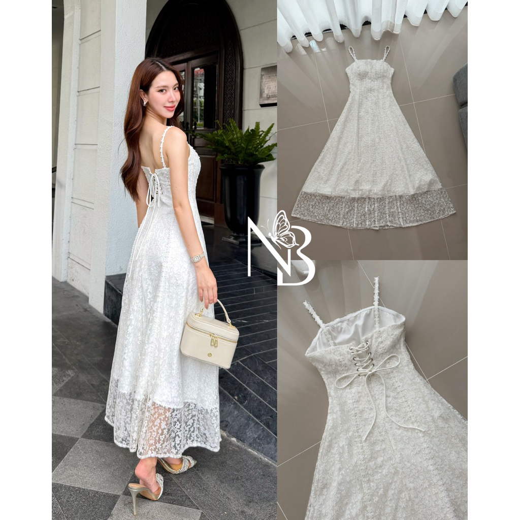 𝐍𝐀𝐁𝐈 𝐁𝐑𝐀𝐍𝐃 เดรสยาวสายเดี่ยวลูกไม้ ผ้าลูกไม้อย่างดี ใส่ซับในยาวทั้งชุด ช่วงอกเสริมฟองน้ำ ด้านหลังปรับสายได้ค่ะ