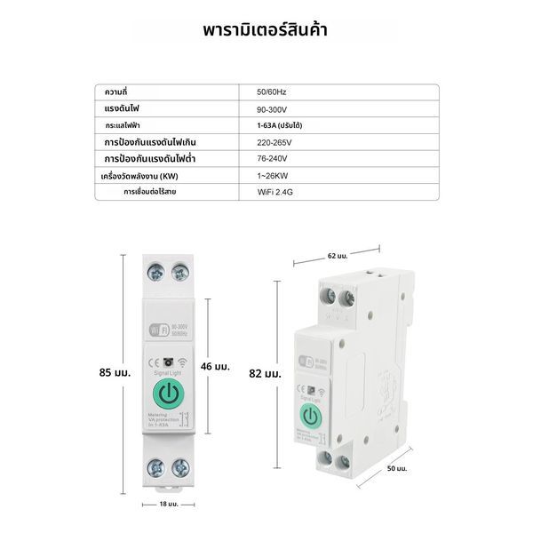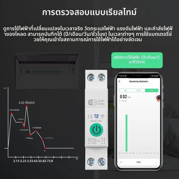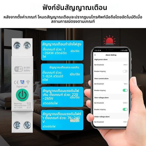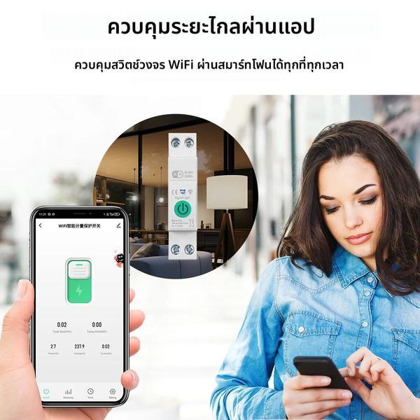 1-63A 1P + N Tuya WiFi Smart Circuit Breaker สวิทช์ Kwh วัดร…