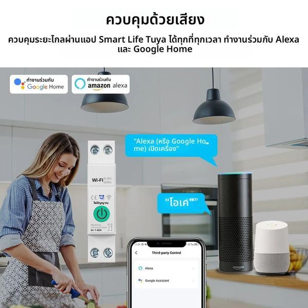 1-63A 1P + N Tuya WiFi Smart Circuit Breaker สวิทช์ Kwh วัดรีเลย์ MCB แรงดันไฟฟ้าป้องกัน Alexa Google Home Alice
