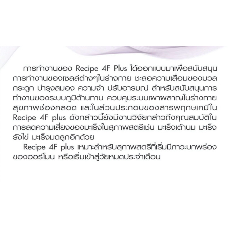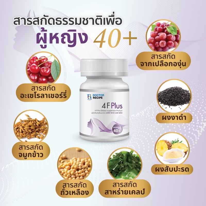 ✅ 4F Plus สูตรสารอาหารที่ประกอบขึ้นมาจาก วิตามิน แร่ธาตุ สารต้านอนุมูลอิสระและสารพฤกษเคมีสกัดธรรมชาติที่ หลากหลายอาทิเช่น Resveratrol จากไวน์แดง, Isoflavone จาก ถั่วเหลือง รวมไปถึง สารสกัดจากงาดำา แบ็คโคออร์ช,จมูกข้าว ซึ่งเป็นกลุ่มสารอาหารที่มีคุณสมบัติเป็นฮอร์โมนธรรมชาติ หรือ ฮอร์โมนพืช ( Phytoestrogen )