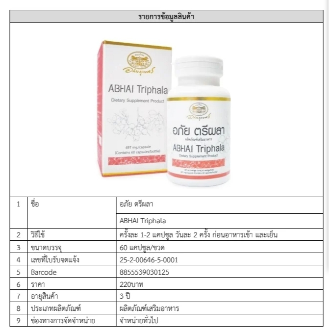 Abhai Triphala อภัย ตรีผลา 60 แคปซูล อภัยภูเบศร Abhaibhubejhr #11914