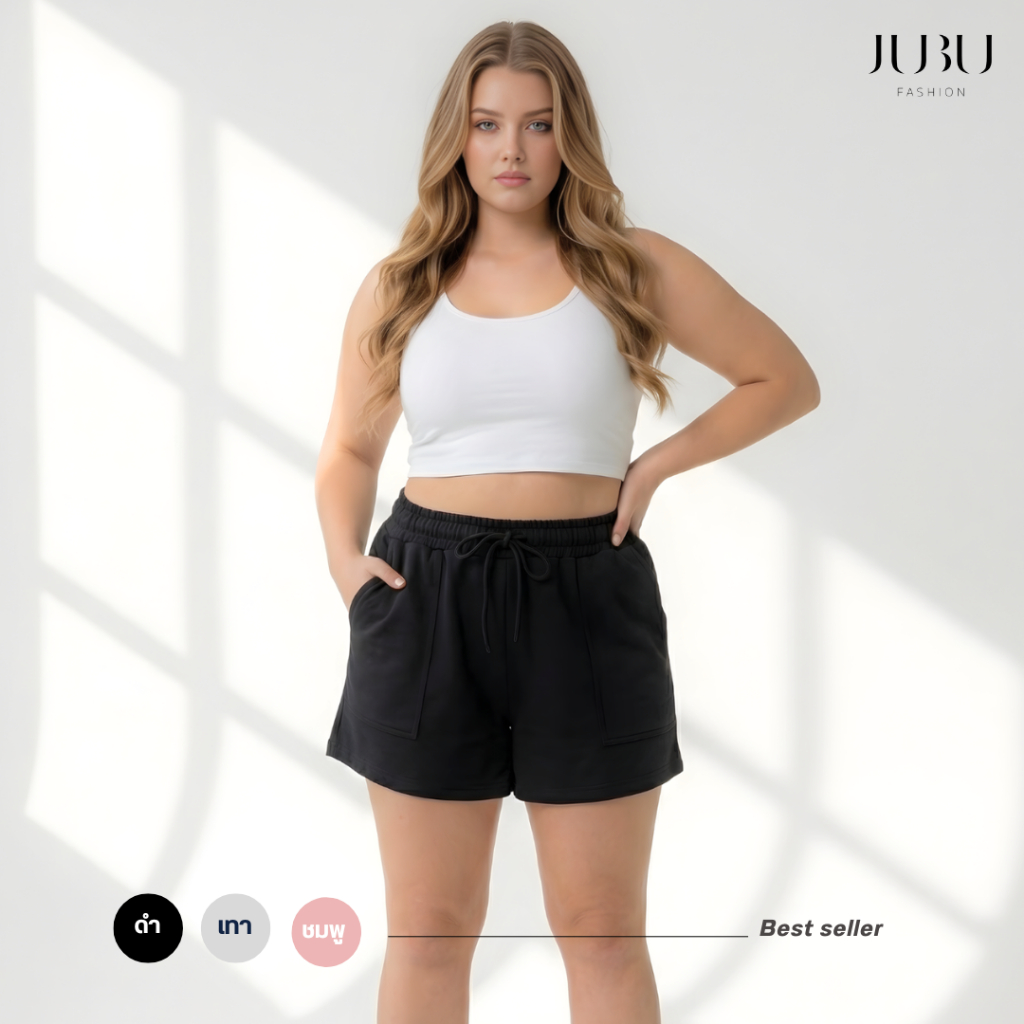 Ally Short กางเกงขาสั้นสาวอวบ กางเกงวอร์มเอวยางยืด ผ้าคอตตอนนุ่มใส่สบาย ไซส์ L/XL เอว 26-42 นิ้ว#611
