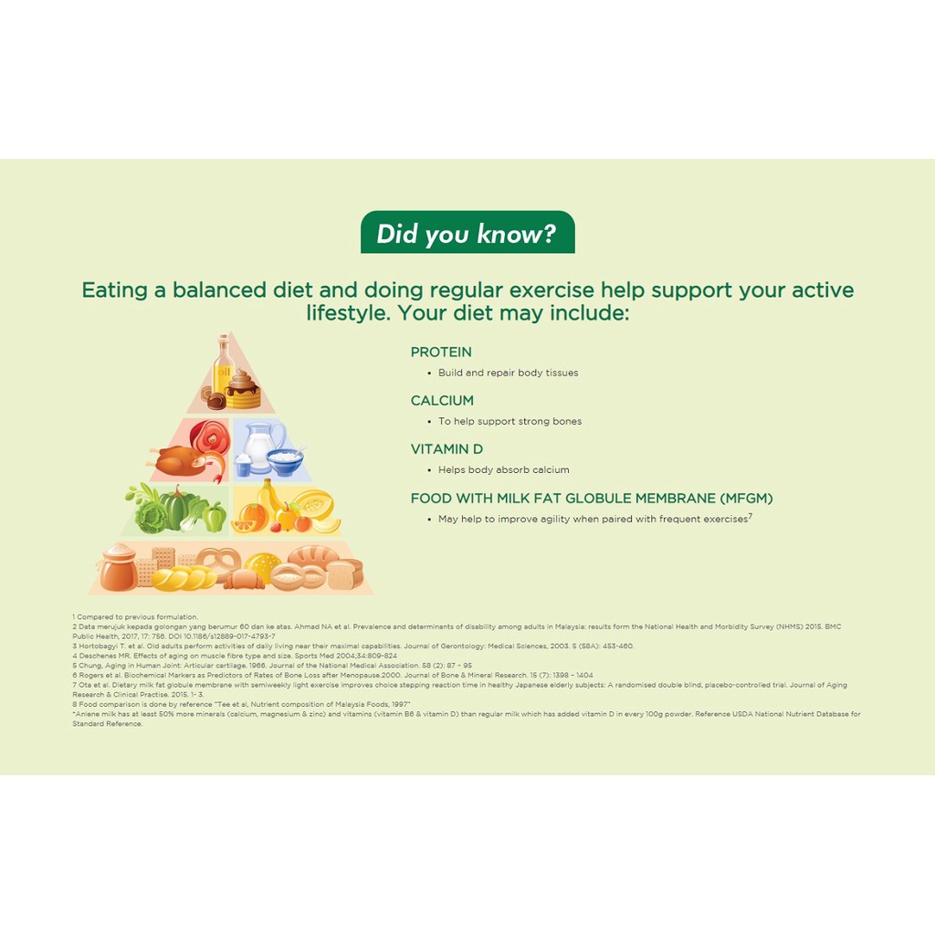 Anlene Regular is a unique milk product which contains a specialized combination of nutrients (MoveMax) that work together to support strong bones, joints and muscles for those aged 19 years and above with higher levels of calcium and Magnesium.