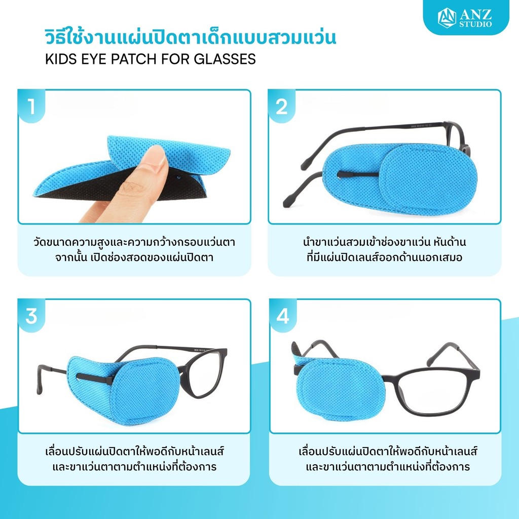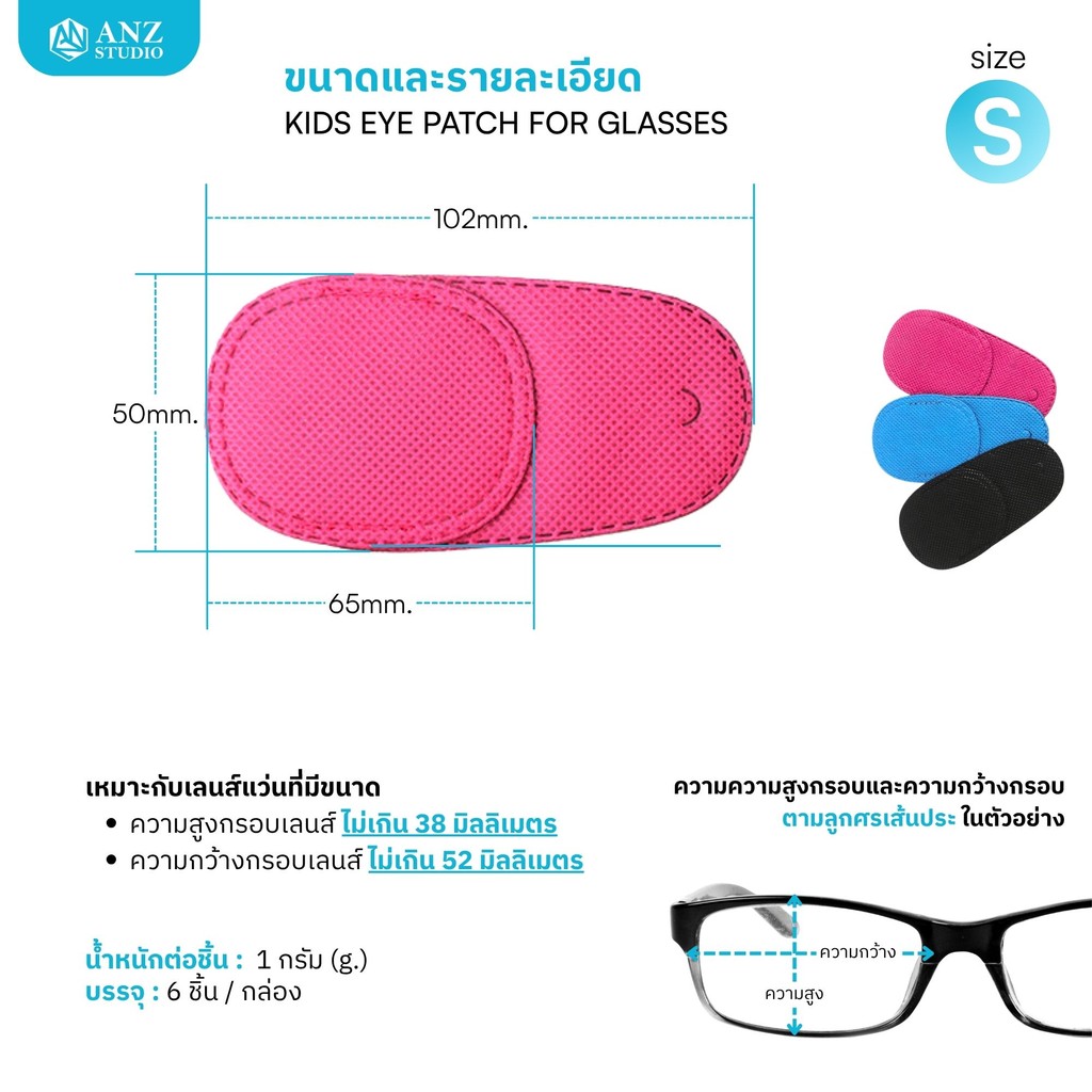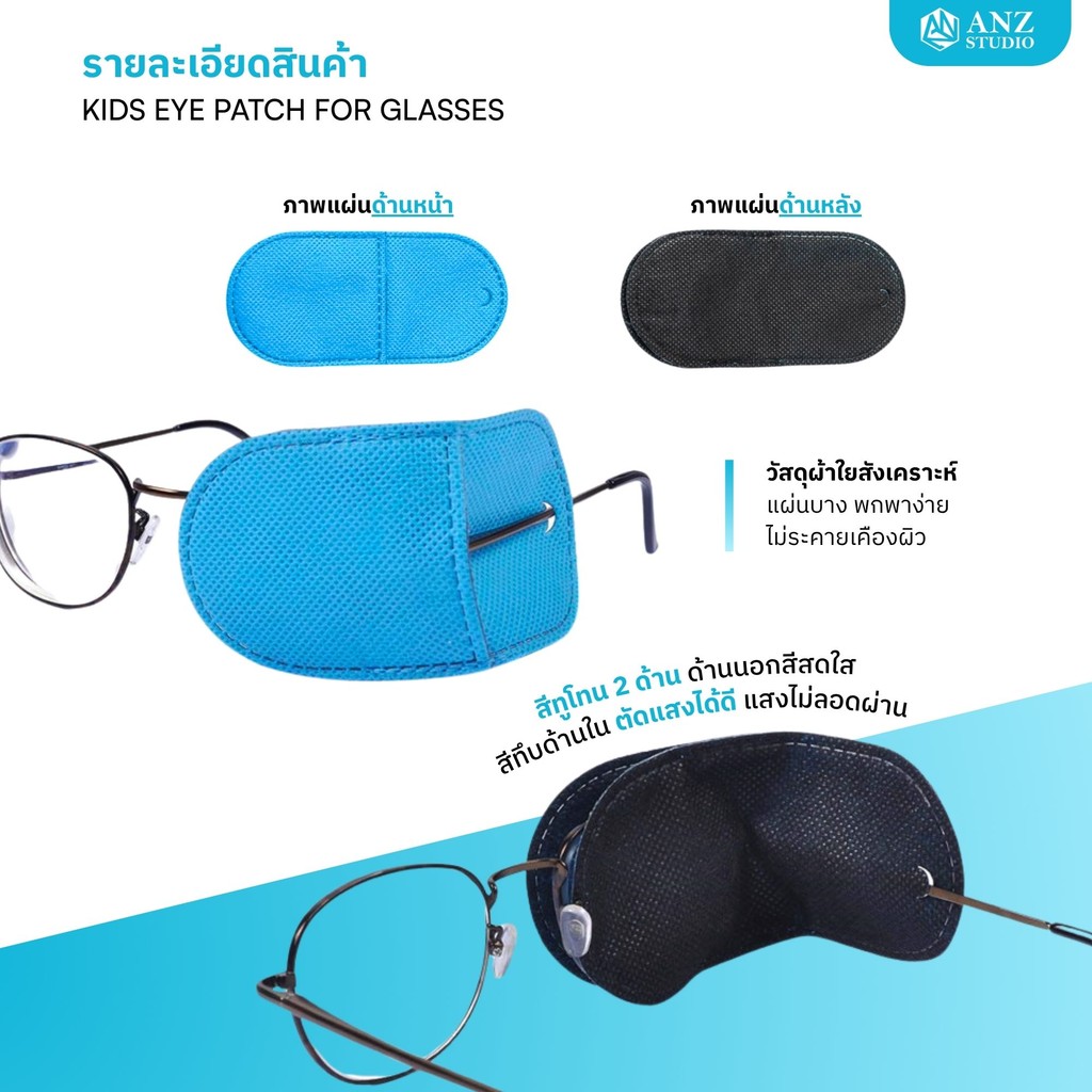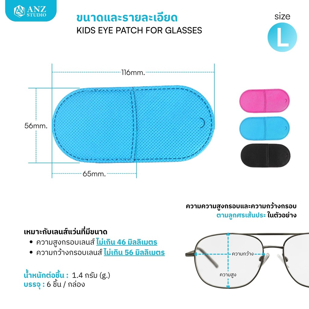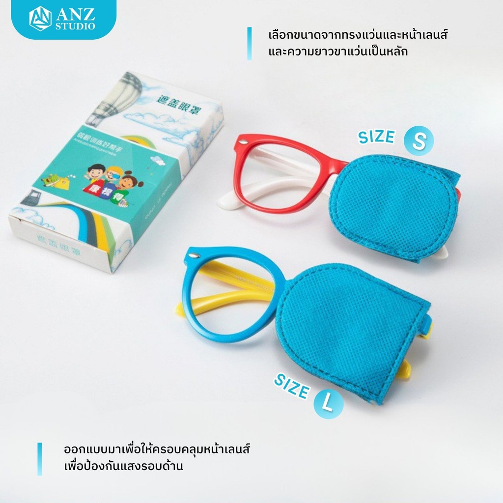 ANZ STUDIO แผ่นปิดตาเด็กแบบสวมแว่นKIDS EYE PATCH FOR GLASSES | ANZ STUDIOใช้สำหรับฝึกสายตาเด็กที่มีภาวะตาเขหรือตาขี้เกียจ (Amblyopia/Strabismus)ขนาดและรายละเอียดสินค้า