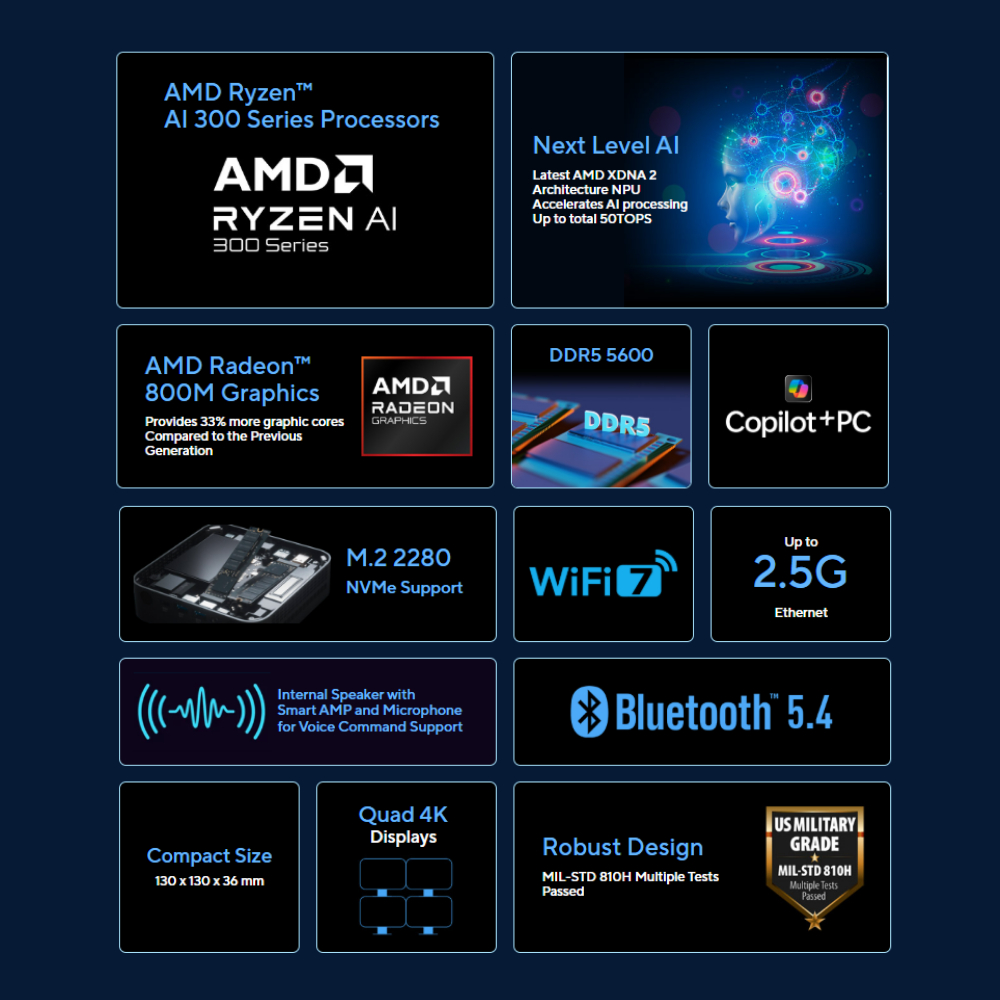 7.ออกแบบมาให้รองรับการอัปเกรดได้อย่างยืดหยุ่น มีสล็อตแรม DDR5 SO-DIMM 2 ช่อง (อัปเกรดได้สูงสุด 32GB) และสล็อตสำหรับใส่ M.2 PCIe Gen4x4 SSD ถึง 2 ช่อง