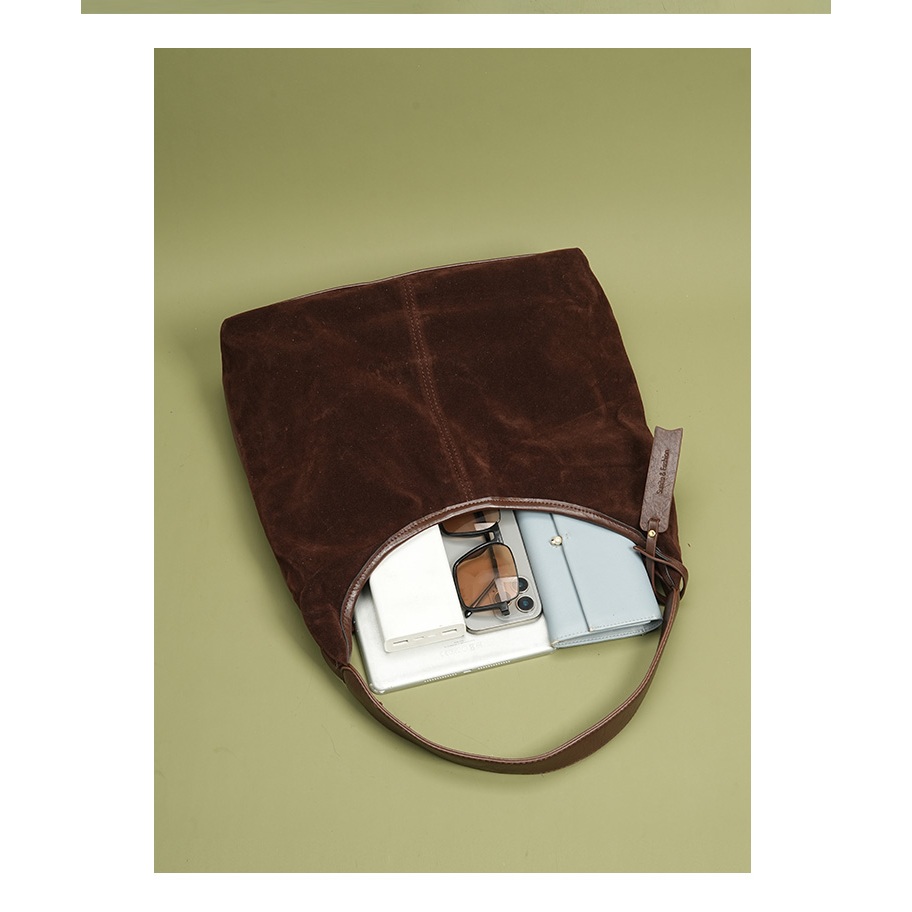 Auure Retro Suede กระเป๋าสะพายไหล่ขนาดใหญ่ ดีไซน์คลาสสิกสำหรับการเดินทาง