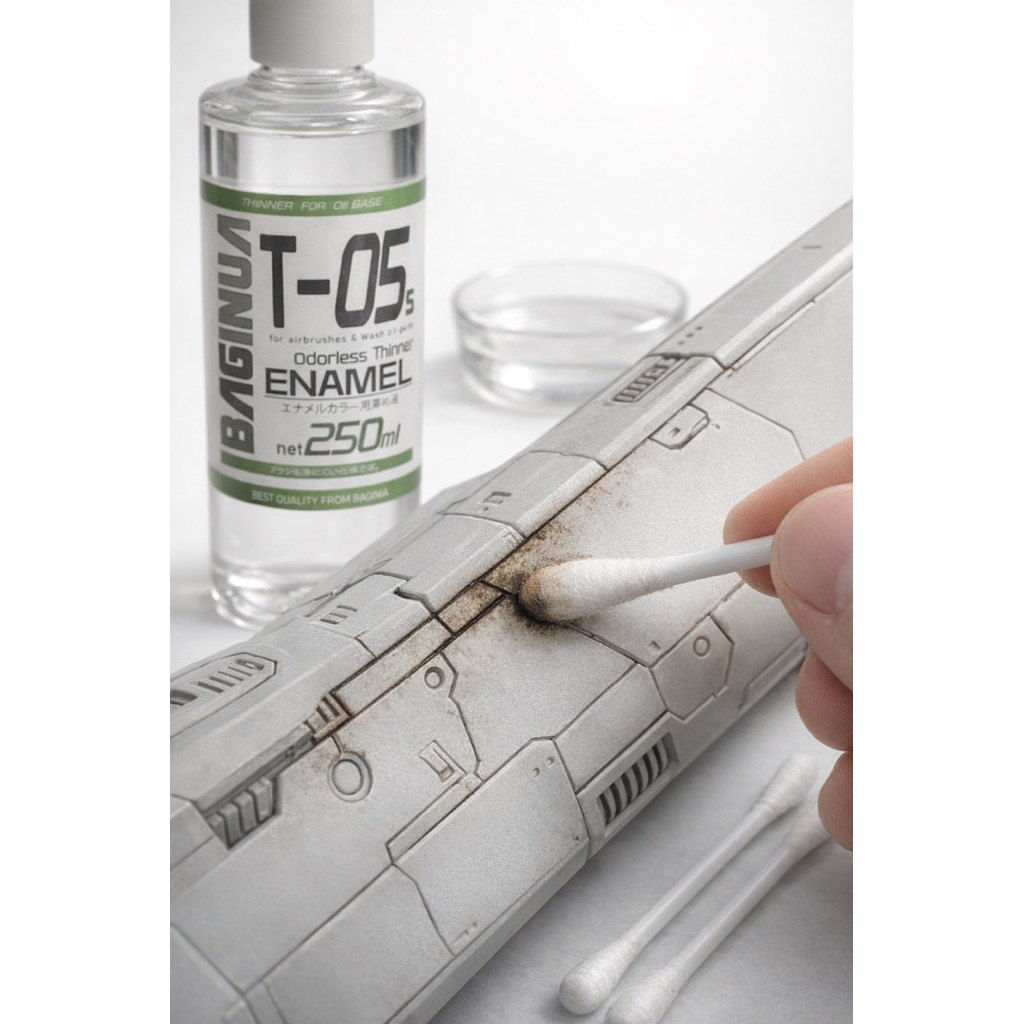 Baginua T-05s ทินเนอร์สำหรับสีอีนาเมล สีน้ำมัน สูตรกลิ่นอ่อนมาก ใช้ผสมและใช้เช็ด ล้างได้ ขนาด250ml